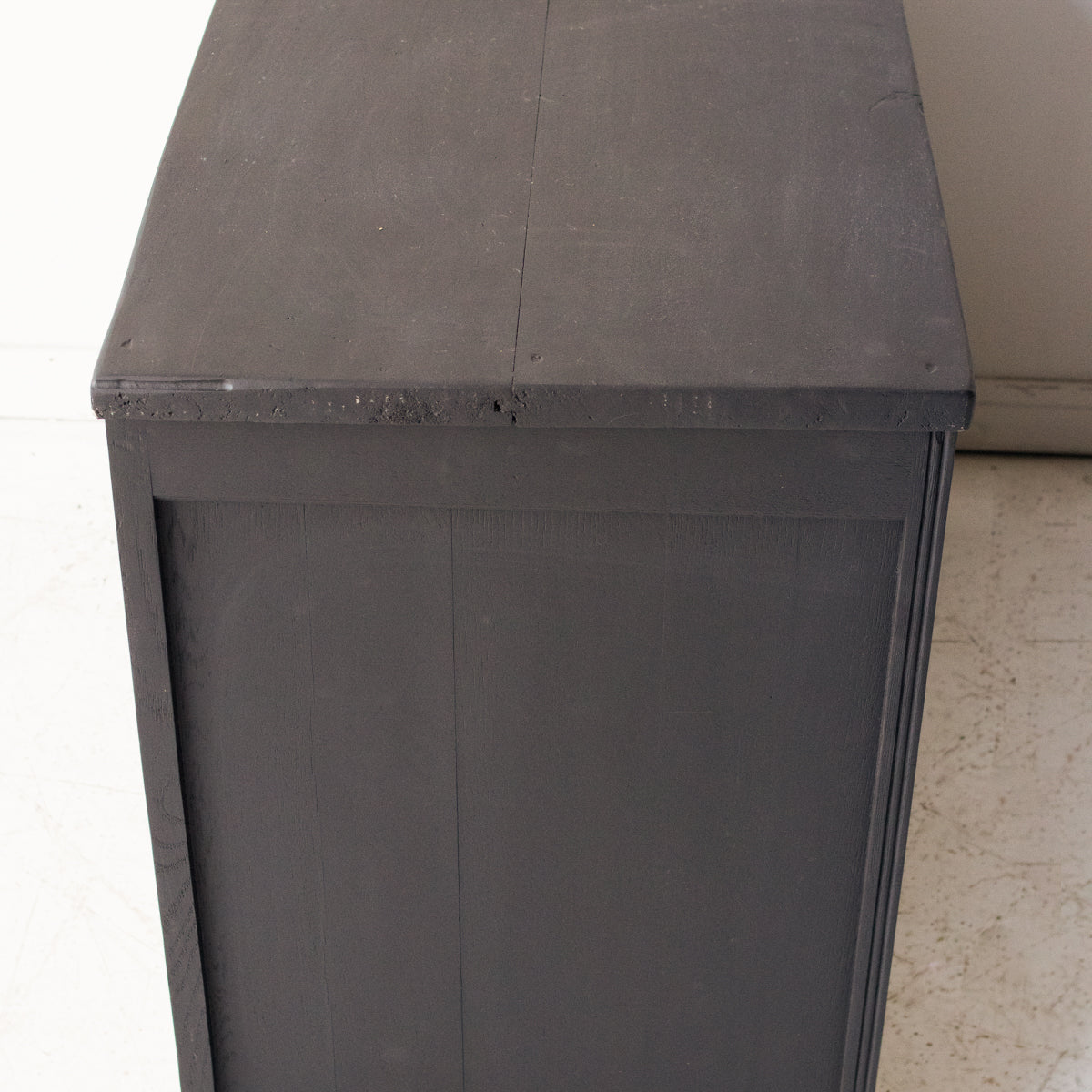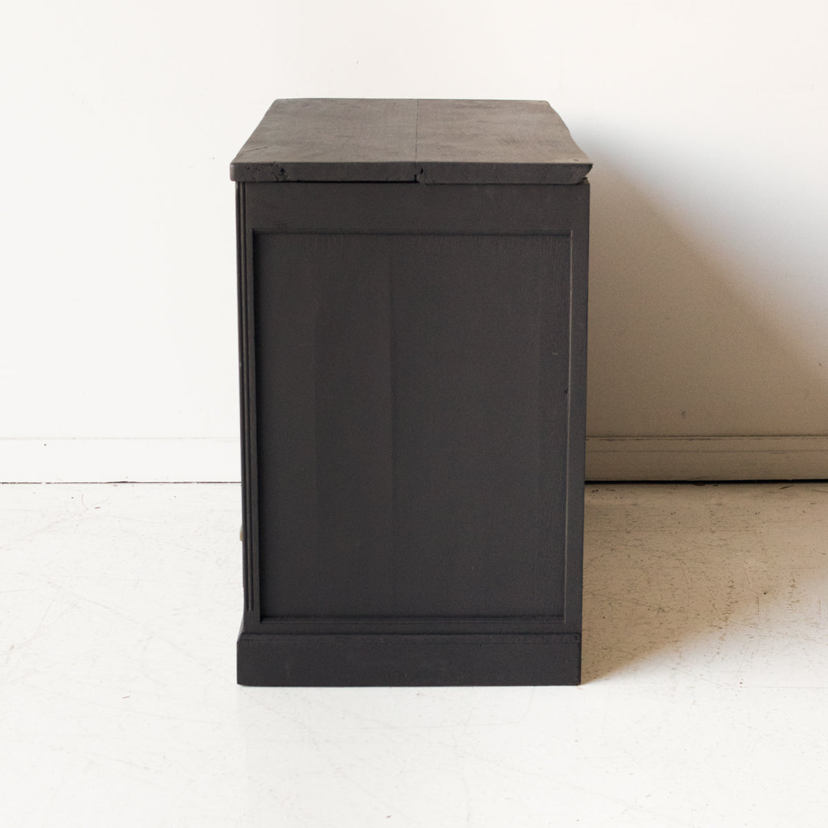 A vintage vitrine finds the perfect spot in one of Caitlin's client's living rooms.