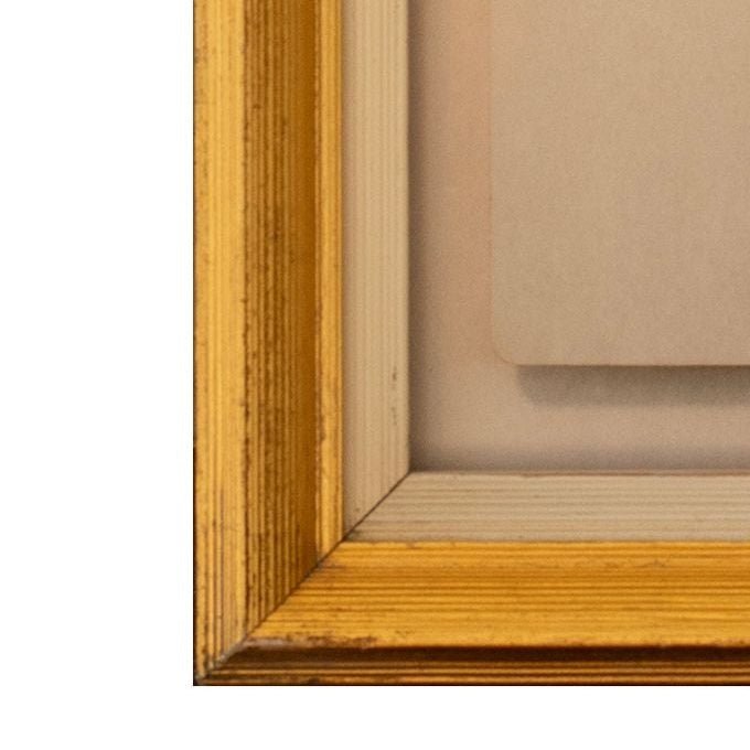 - Paired with a vintage c. 1900 reeded frame with gilded finish and hand painted ivory detail.