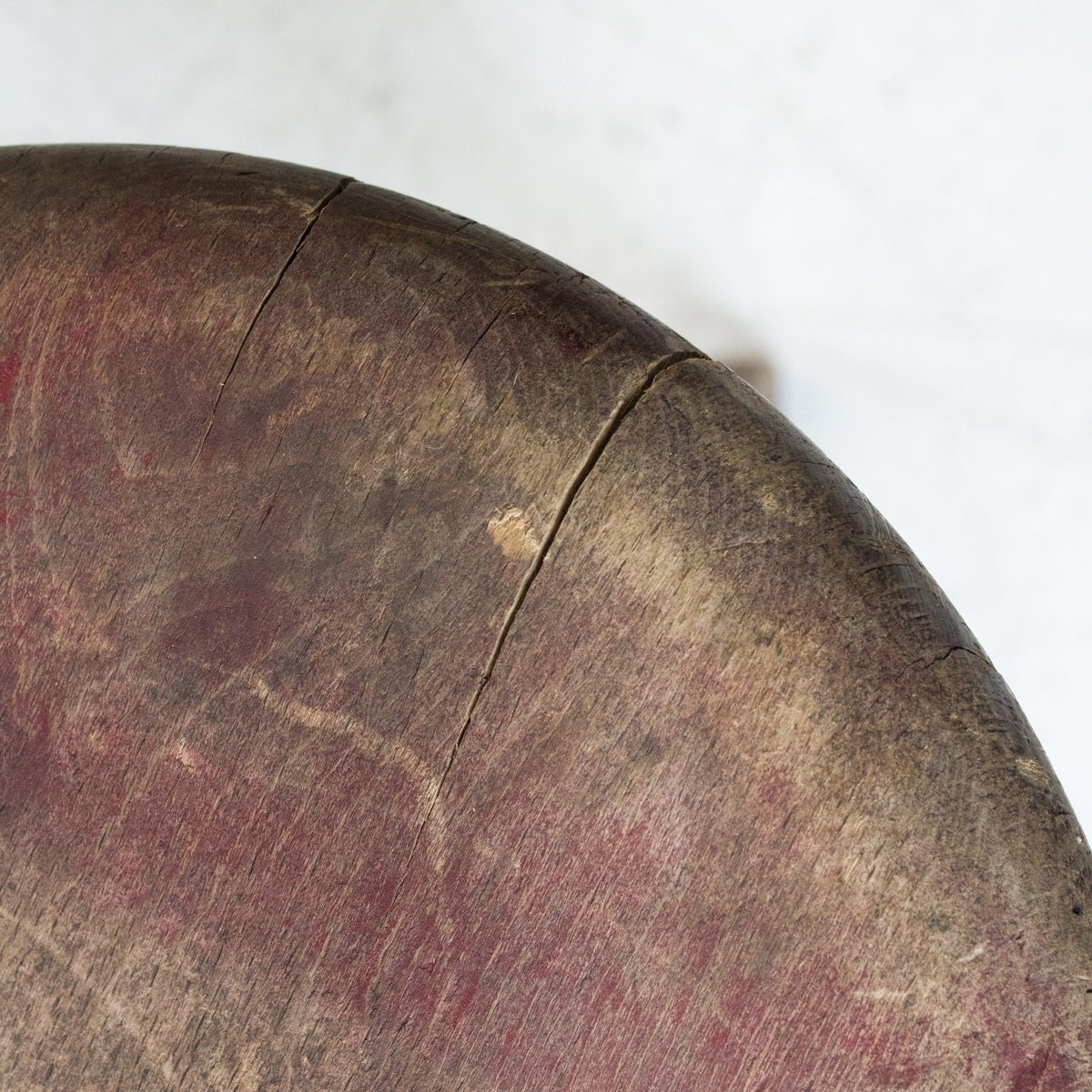 Authentic vintage piano stool sourced from a Lyon flea market. Crafted from solid wood with a raw, dry finish showcasing remnants of original paint—a testament to its age and character. A functional piece that bridges musical heritage with vintage home décor.