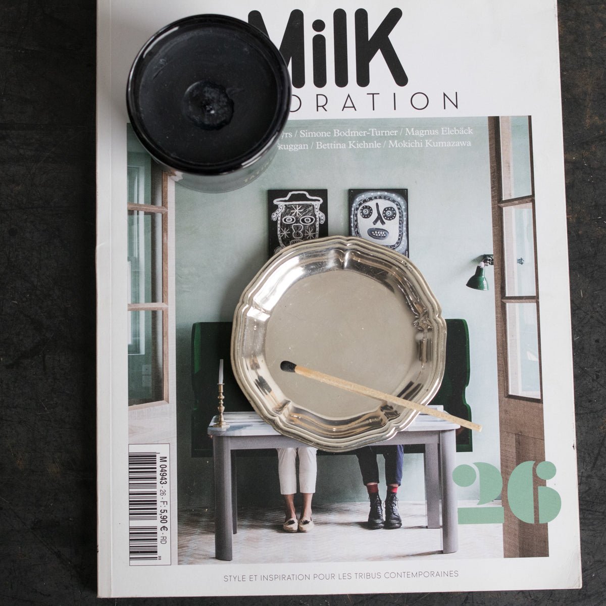 - Inky black when lit, a light grey crystallization or texture may appear on the unlit candle surface. This is considered a unique part of working with natural colorants.