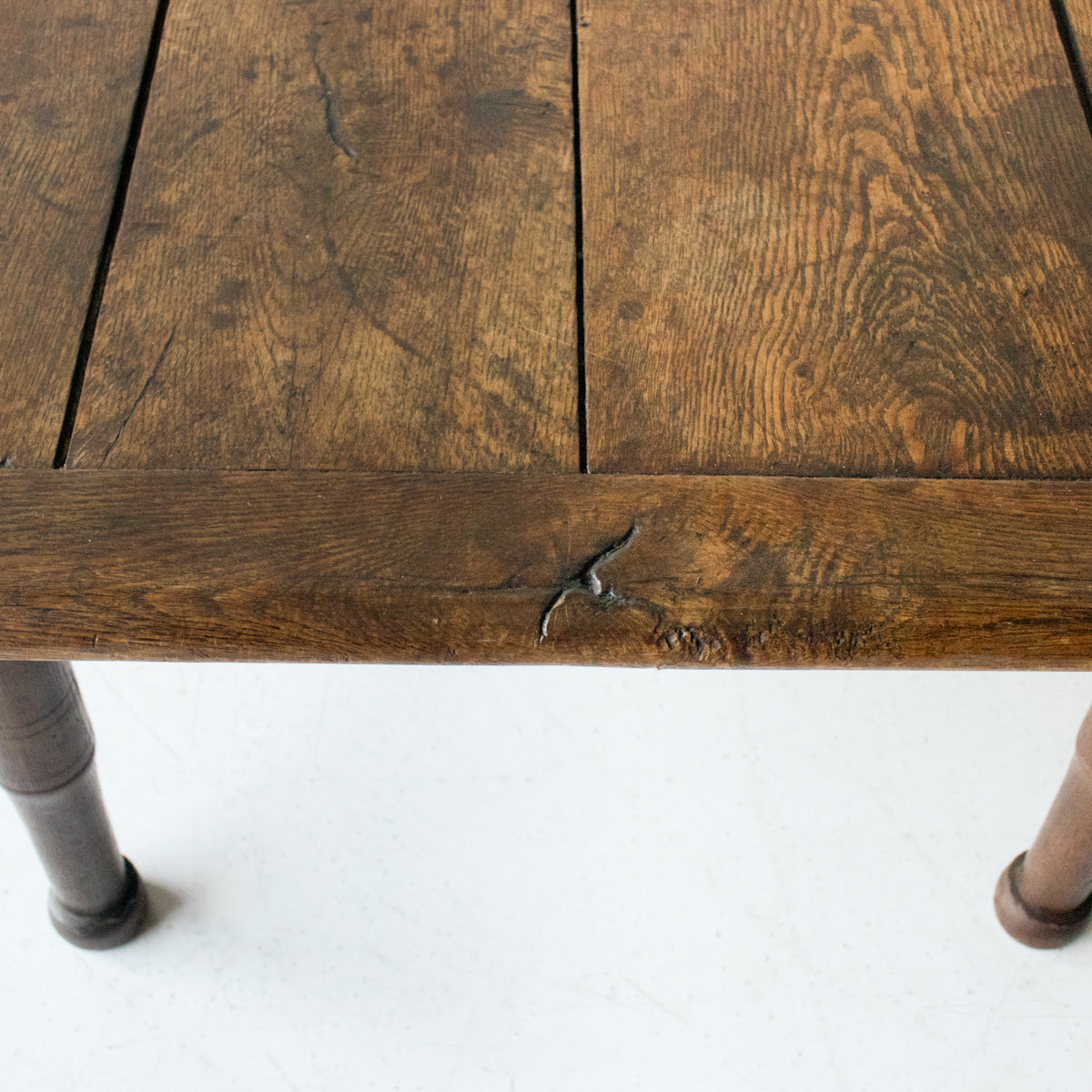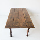 This table was once the centerpiece of a French kitchen. Its feet began to wear away over time, so we've cut it down to coffee table height to give it new life.