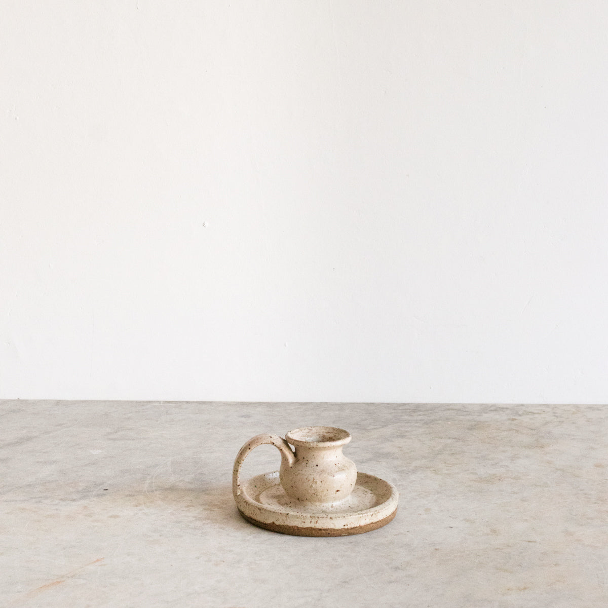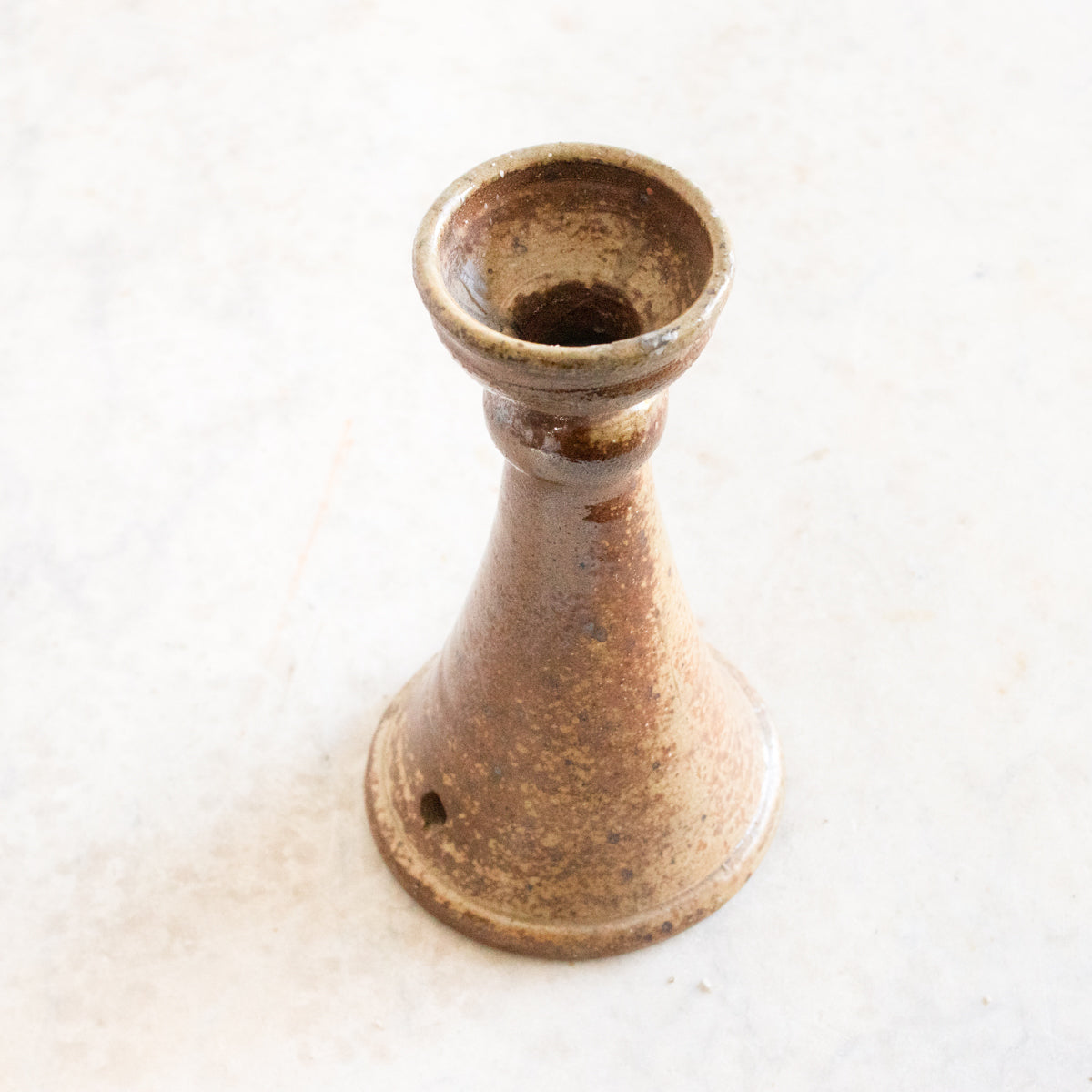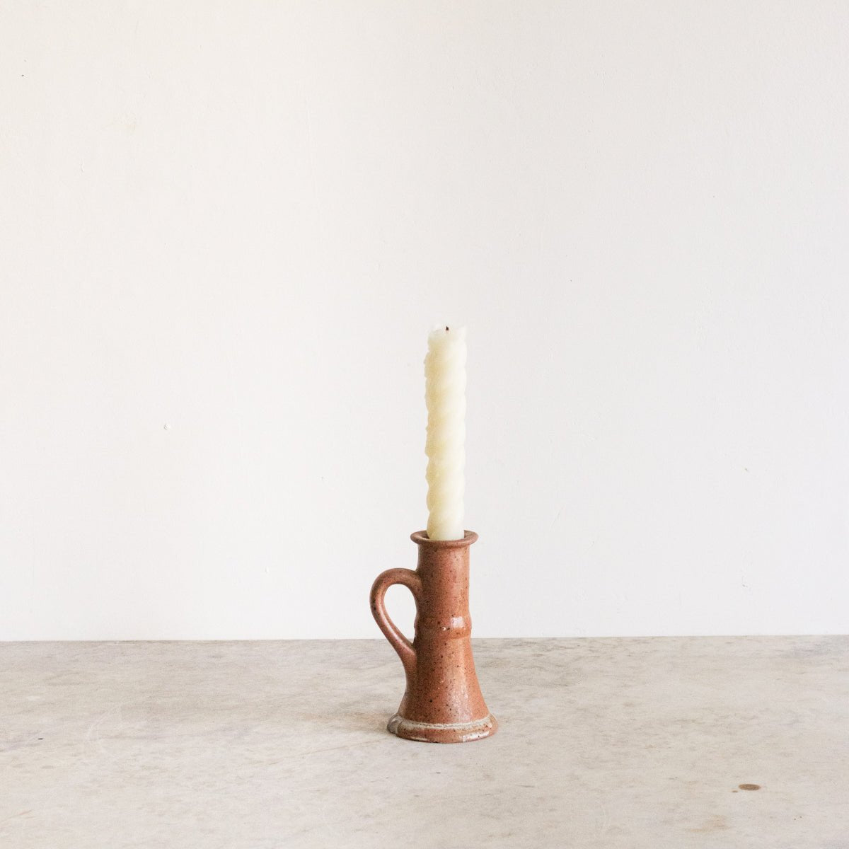 Introducing the Stoneware Candlestick, a unique piece discovered at a charming flea market in Lyon. Each candlestick is handcrafted from stoneware, with some pieces signed by the artist. This listing is for one candlestick, allowing you to select your favorite. Please note, beeswax tapers are sold separately.