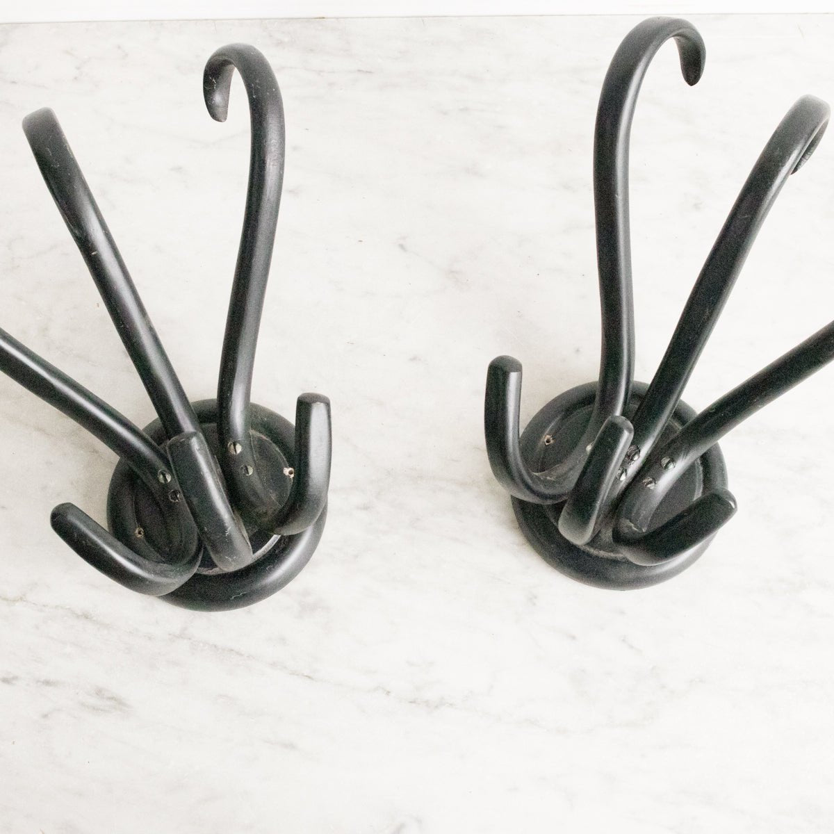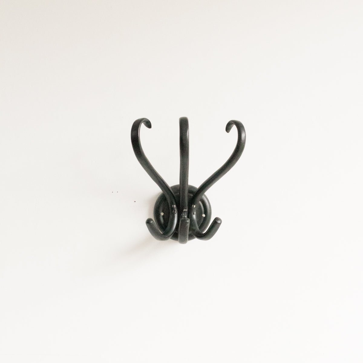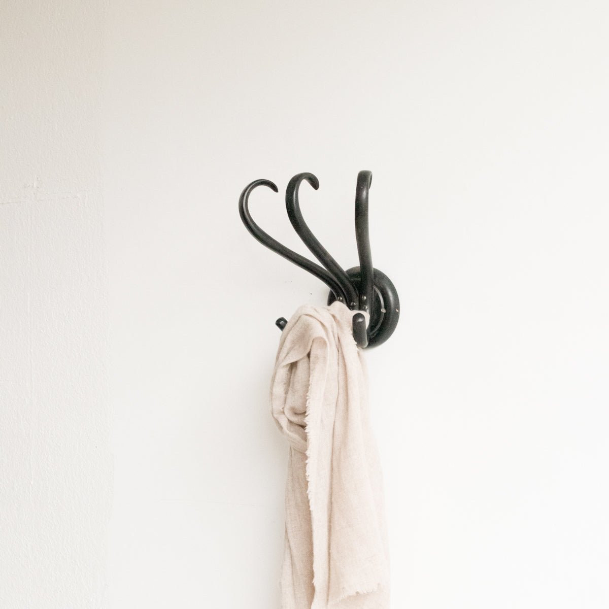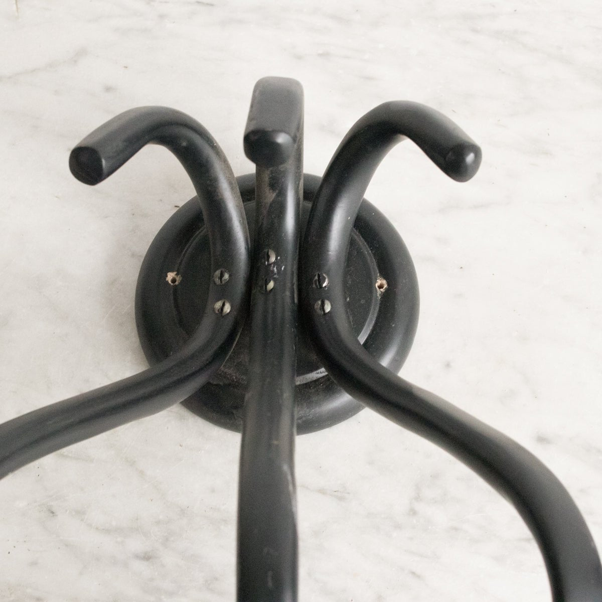 A striking midcentury coat hook sourced from a Haute Loire flea market. Crafted from steam-bent wood with a refined black lacquer finish, this piece exemplifies the elegant minimalism of early modern design. The sculptural form provides both functional storage and sculptural presence—ideal for entryways, bedrooms, or gallery walls.