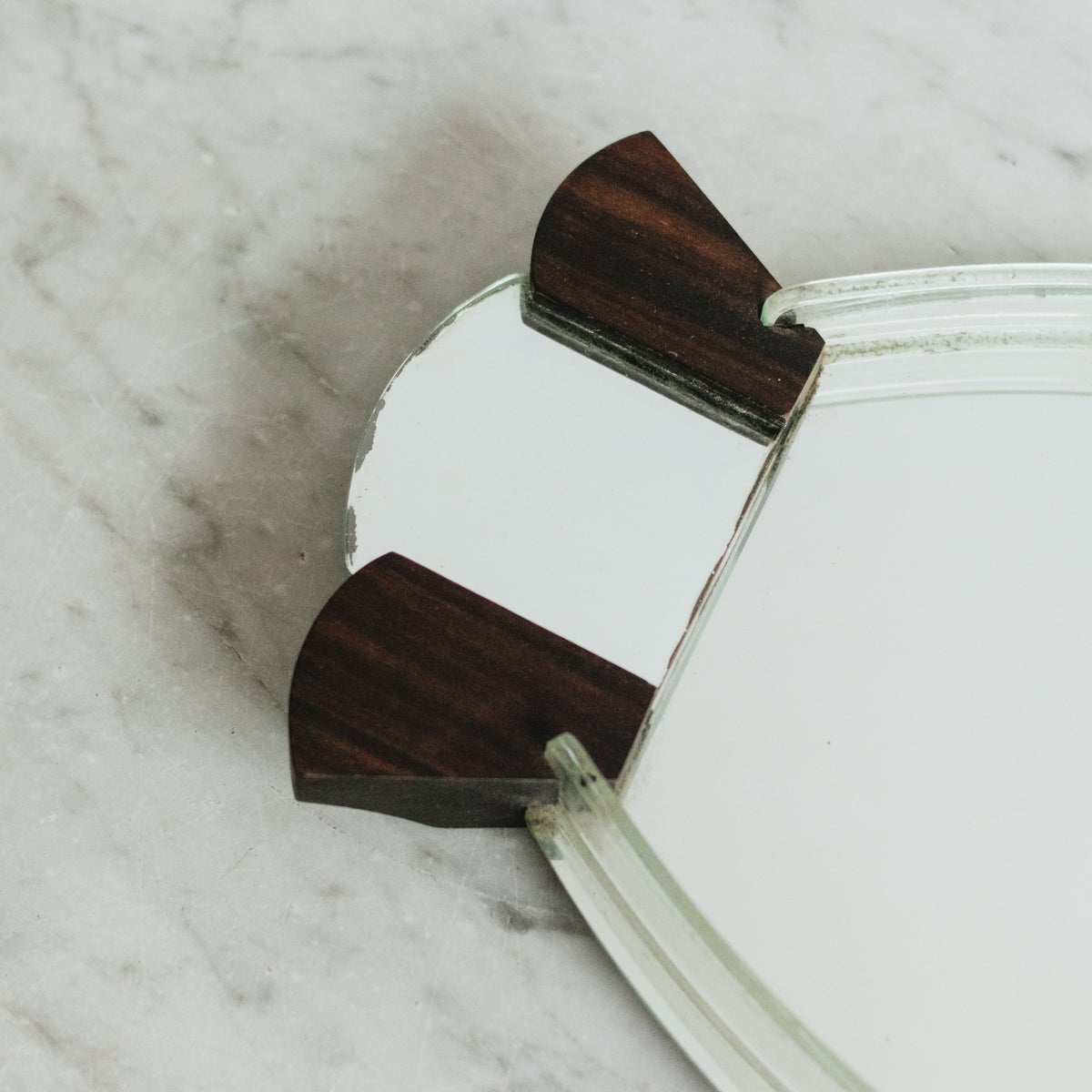 Art Deco Mirrored Tray - Elevate your home decor with the timeless elegance of the Art Deco Mirrored Tray. Inspired by the classic designs of Paray le Monial, this exquisite tray features a stunning mirrored surface that reflects light beautifully, adding a touch of sophistication to any space. Perfect for serving drinks, displaying perfumes, or as a centerpiece, this tray combines functionality with style, making it a must-have for any discerning homeowner.