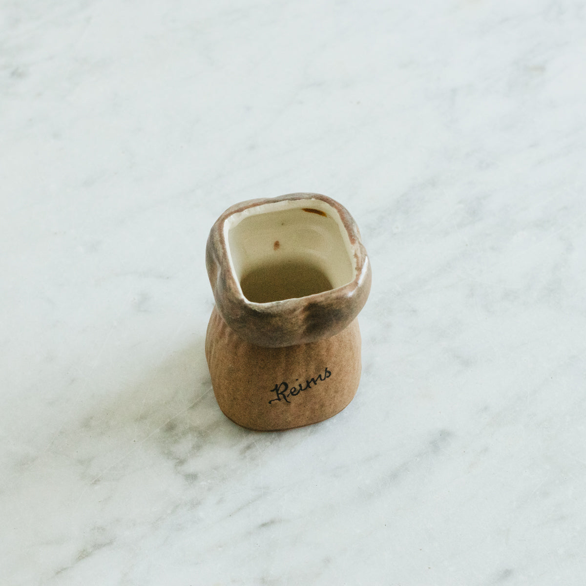 Introducing the Bouchon de Champagne Ashtray, a unique find from the charming flea markets of Le Mans. Crafted from high-quality ceramic, this exquisite piece is adorned with the hand-painted name of the renowned Champagne region, "Reims." Perfect for collectors and enthusiasts alike, it adds a touch of French elegance and history to any space.