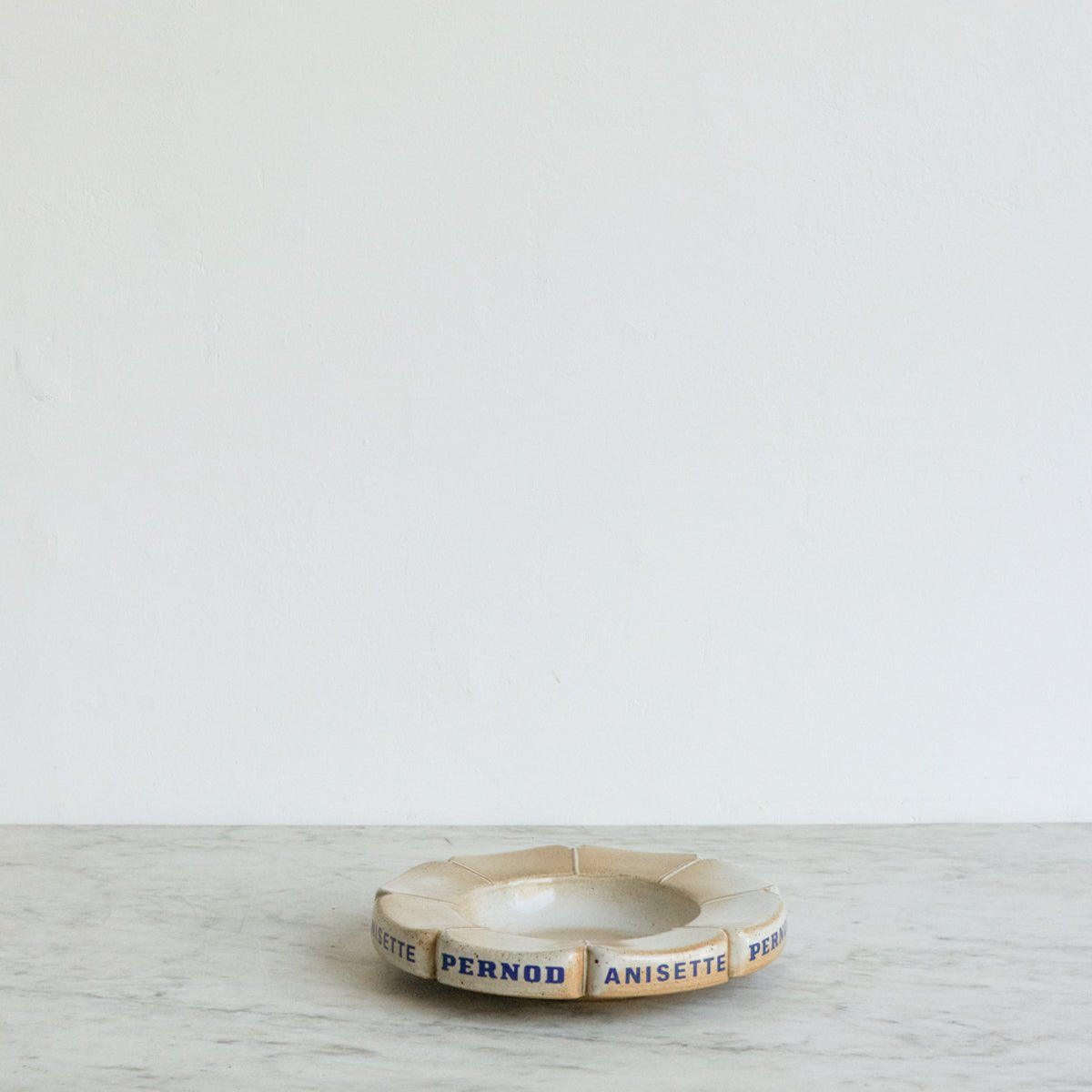 This piece is a relic of a time gone by when ashtrays acted as promotional advertisements for cigarettes and aperitifs. This example was an advertisement for the introduction pastis Pernod Anisette.