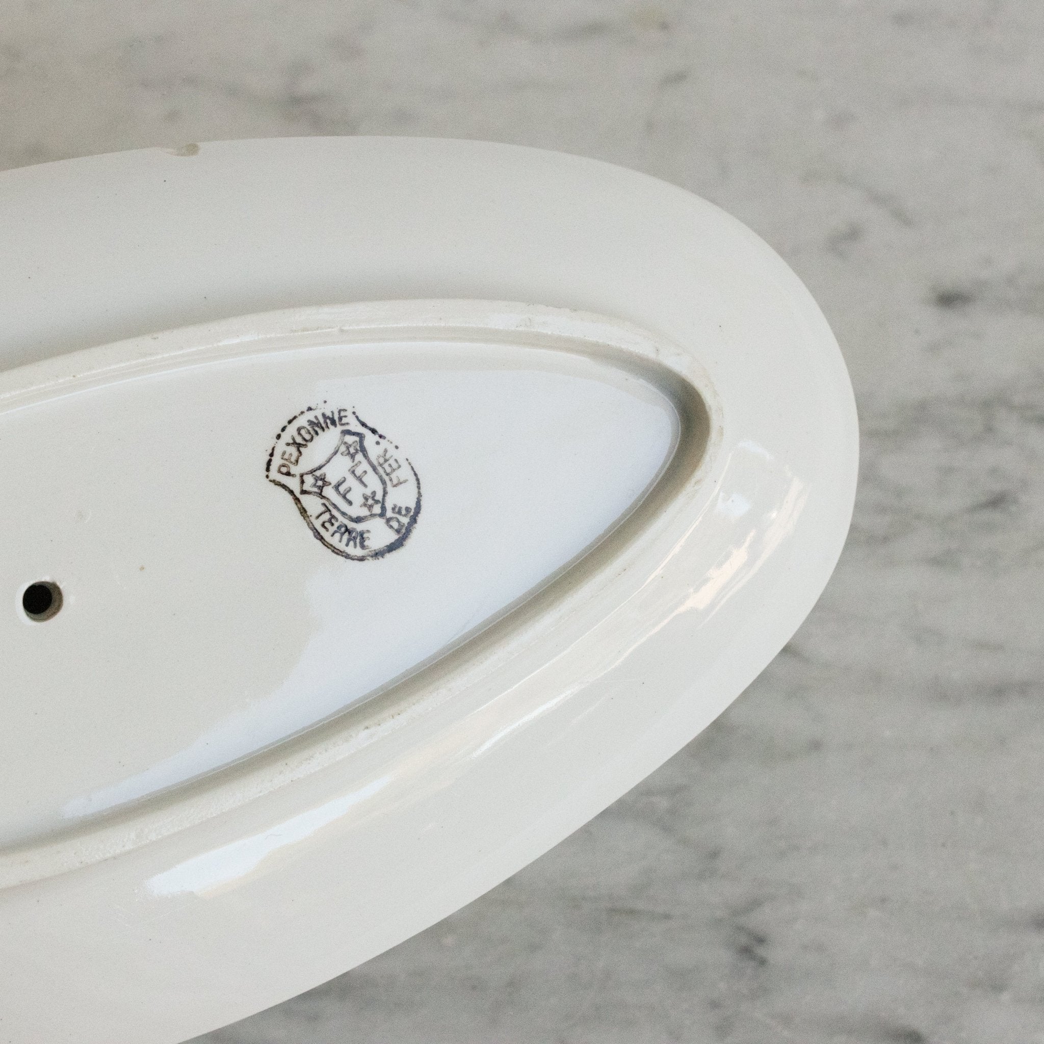 Ironstone is made from a mixture of clay, flint, and ironstone (a sedimentary rock rich in iron oxide), which gives it its characteristic dense and heavy composition. The clay and other materials are combined and formed into the desired shape, such as plates, bowls, pitchers, or teapots. The pieces are then fired at high temperatures, resulting in a hard, vitrified surface.
