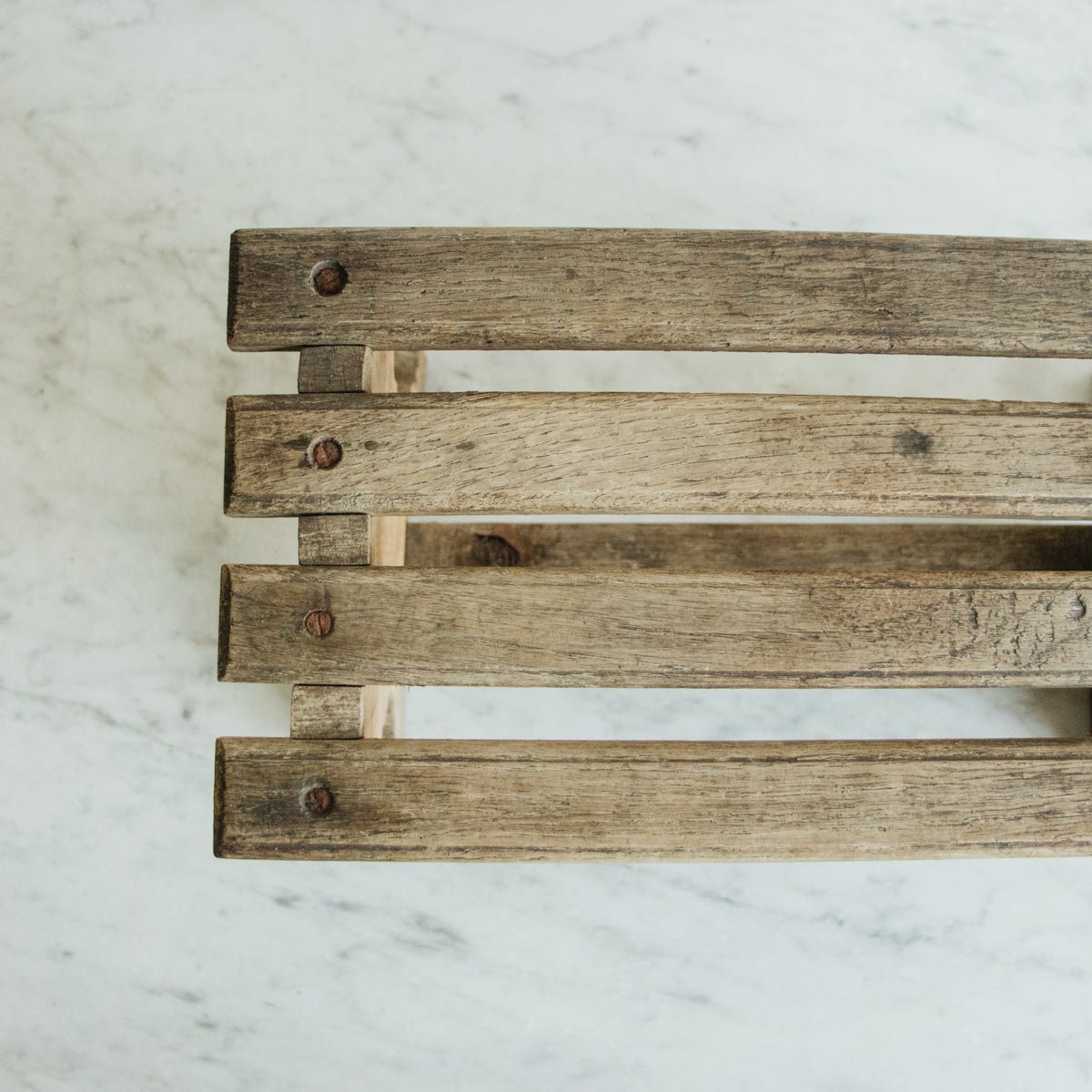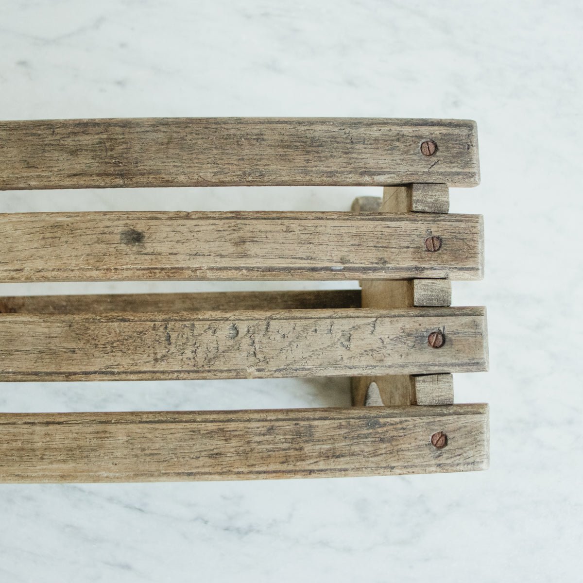 This petite stool was once used in a French monastery. In the monastic tradition, a high ranking leader's name "Prieur Jean Claude" is incribed in the side of the stool. He had only one stool, and this was it.