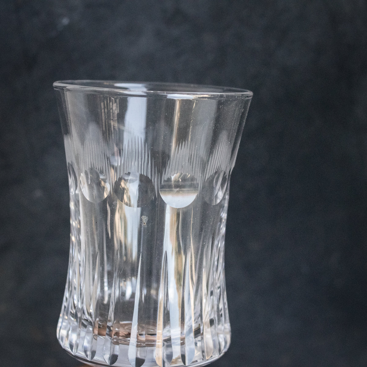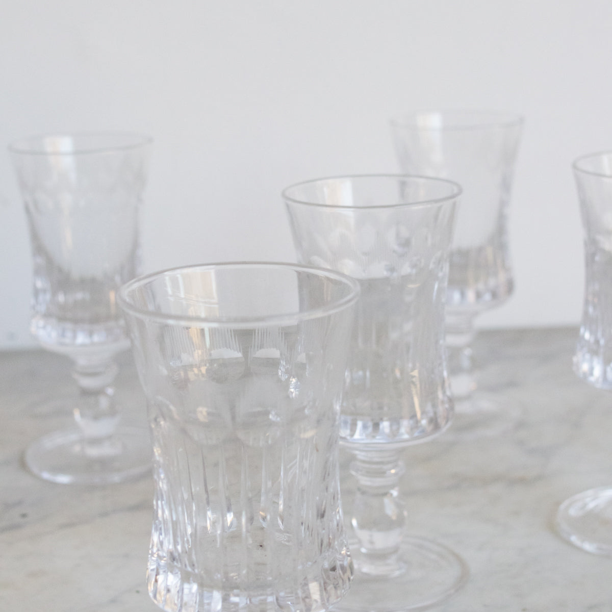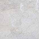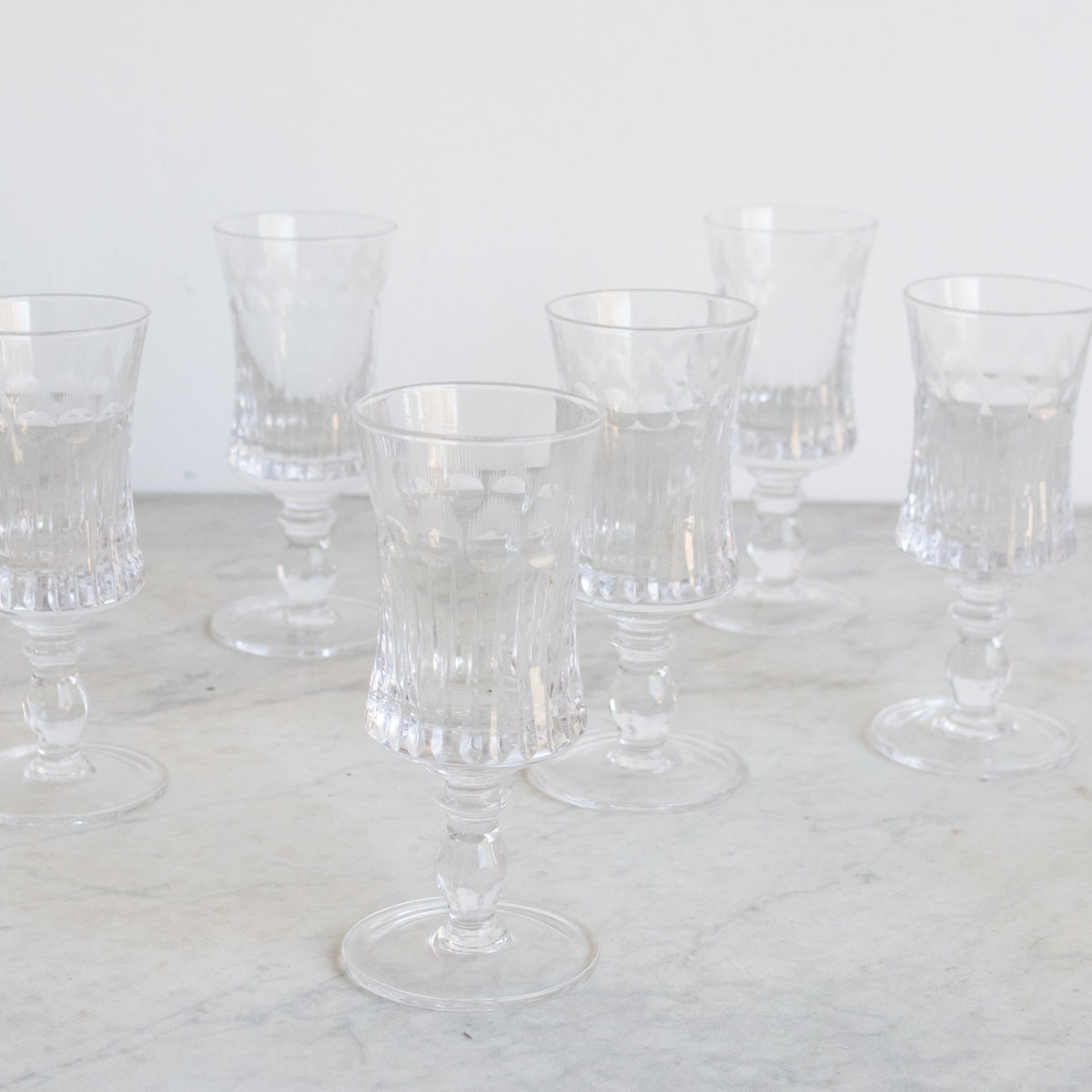 Introducing the Cut Crystal Wine Glass Set of 6, a timeless treasure discovered in a charming flea market in Lyon. Each glass is crafted from exquisite crystal and features intricate hand-cut details, adding a touch of elegance to any occasion. This exclusive set includes all six stunning glasses, perfect for elevating your dining experience.