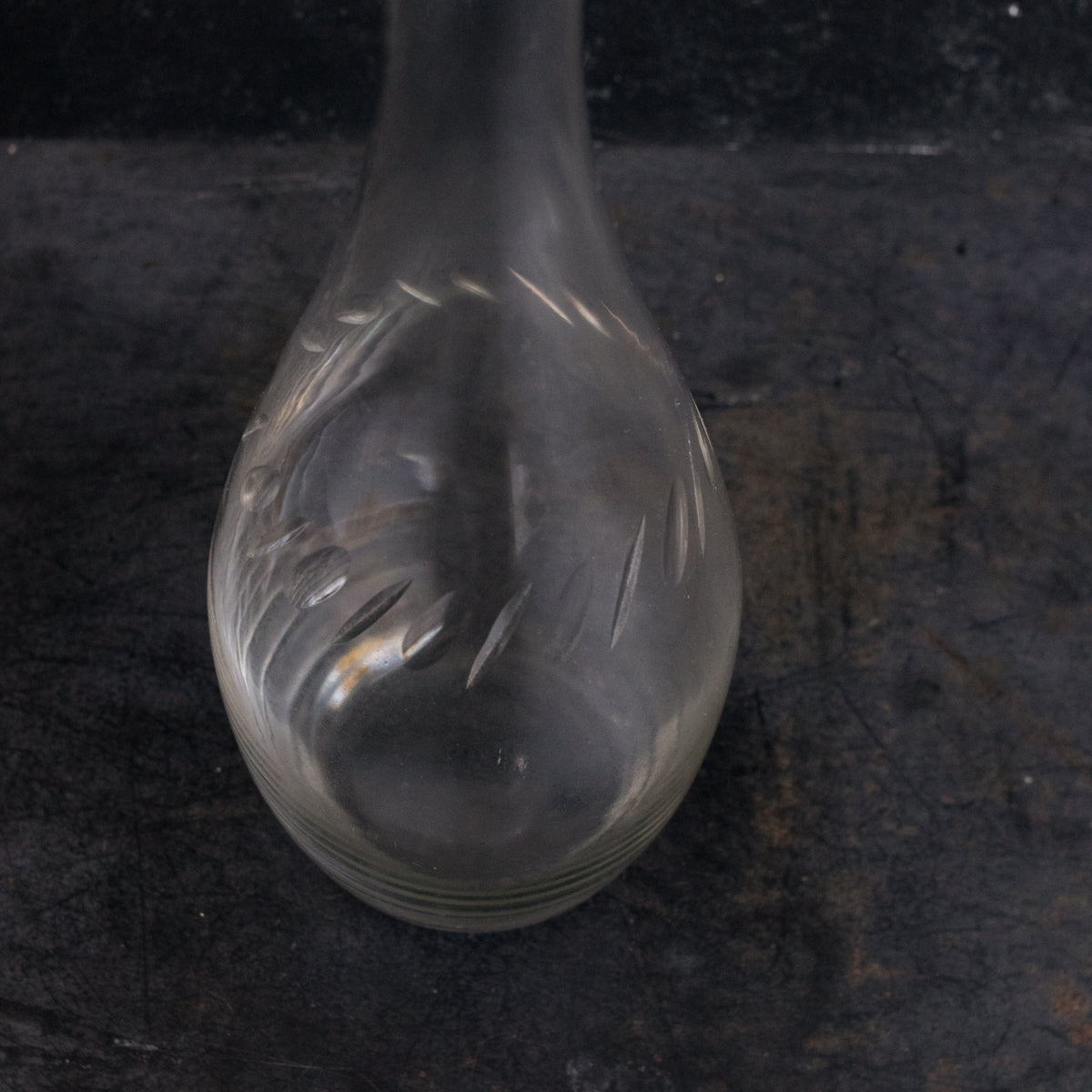 Introducing the Mid-century Bar Decanter, a timeless piece discovered in a charming flea market in Bezier. Crafted from exquisite glass, this decanter features intricate hand-etched details that add a touch of elegance to any bar setting. The listing includes both the decanter and the matching stopper, making it a perfect addition to your collection or a thoughtful gift for any occasion.
