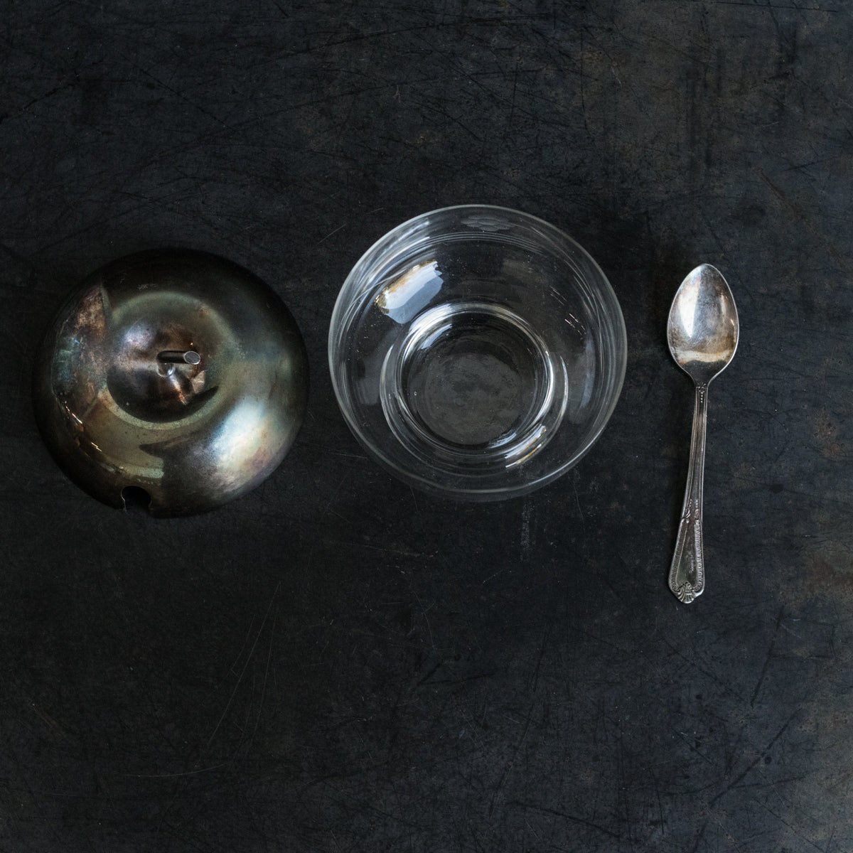 Listing includes engraved bowl, silver top, and silver spoon shown.