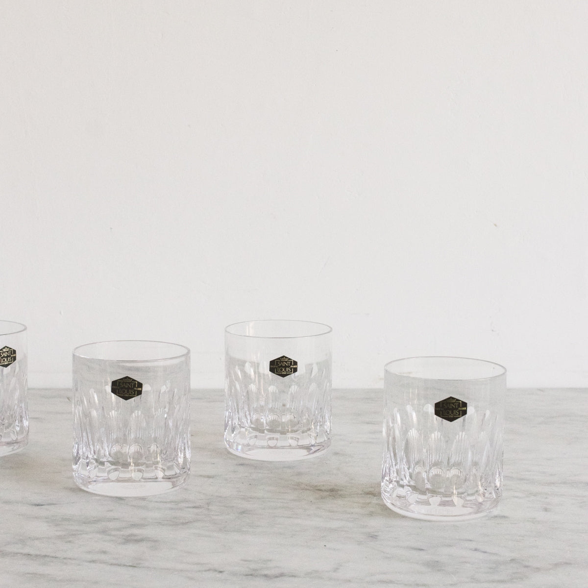 Introducing the St. Louis Crystal Bar Glass Set of 4. Unearthed from a charming flea market in Haute Loire, these exquisite glasses are crafted from fine crystal and feature intricate hand-cut details. Each glass is stamped with the maker's mark, ensuring authenticity and timeless elegance. Elevate your barware collection with this unique set, perfect for any occasion.