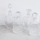 Introducing the Vintage Crystal Bar Decanter, a one-of-a-kind treasure discovered in the charming flea markets of Haute Loire. Crafted from exquisite crystal, each decanter is unique, ensuring that you receive a truly special piece. The listing includes one decanter and a matching stopper, both reflecting the elegant style depicted. Let us select a beautiful decanter for you, perfect for adding a touch of vintage sophistication to your bar collection.