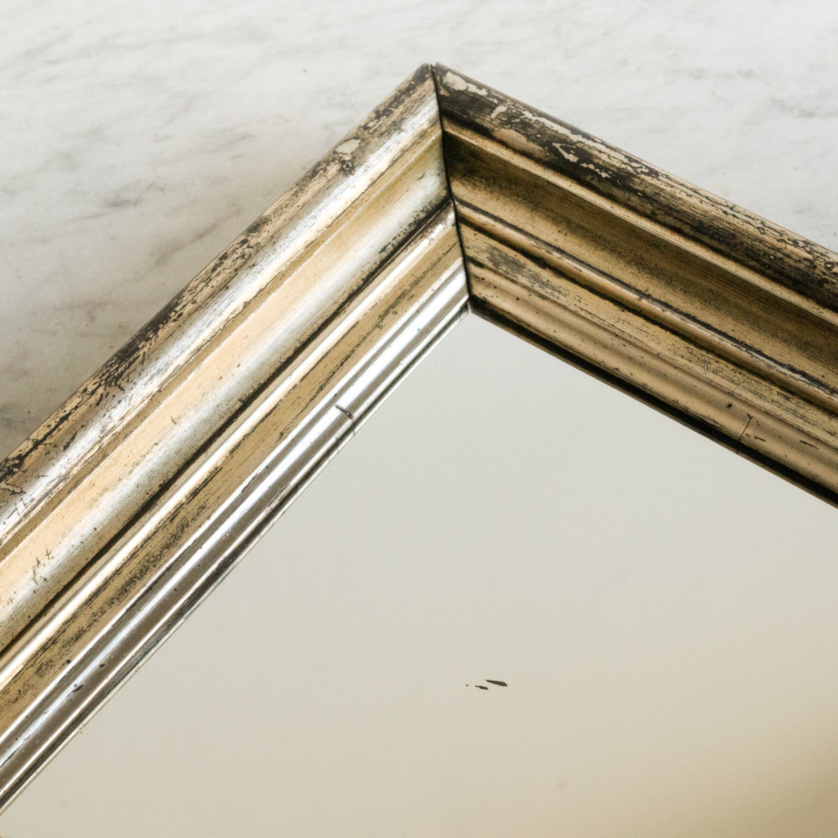 Discover timeless elegance with the Petite Gilded Mirror. Measuring 12 x 13.75 inches, this exquisite piece was found in a charming flea market in Bezier. It features a beautifully crafted wood and plaster frame with a luxurious gilded finish, complemented by vintage mirror glass. Perfect for adding a touch of classic sophistication to any space.