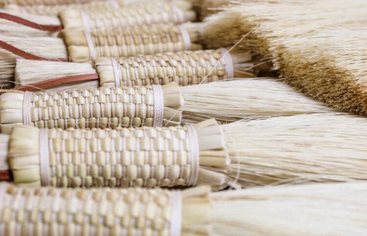 - Whisk is hand made of tampico, the fibers of the agave plane, hand woven and tie. Leather hanging loop.