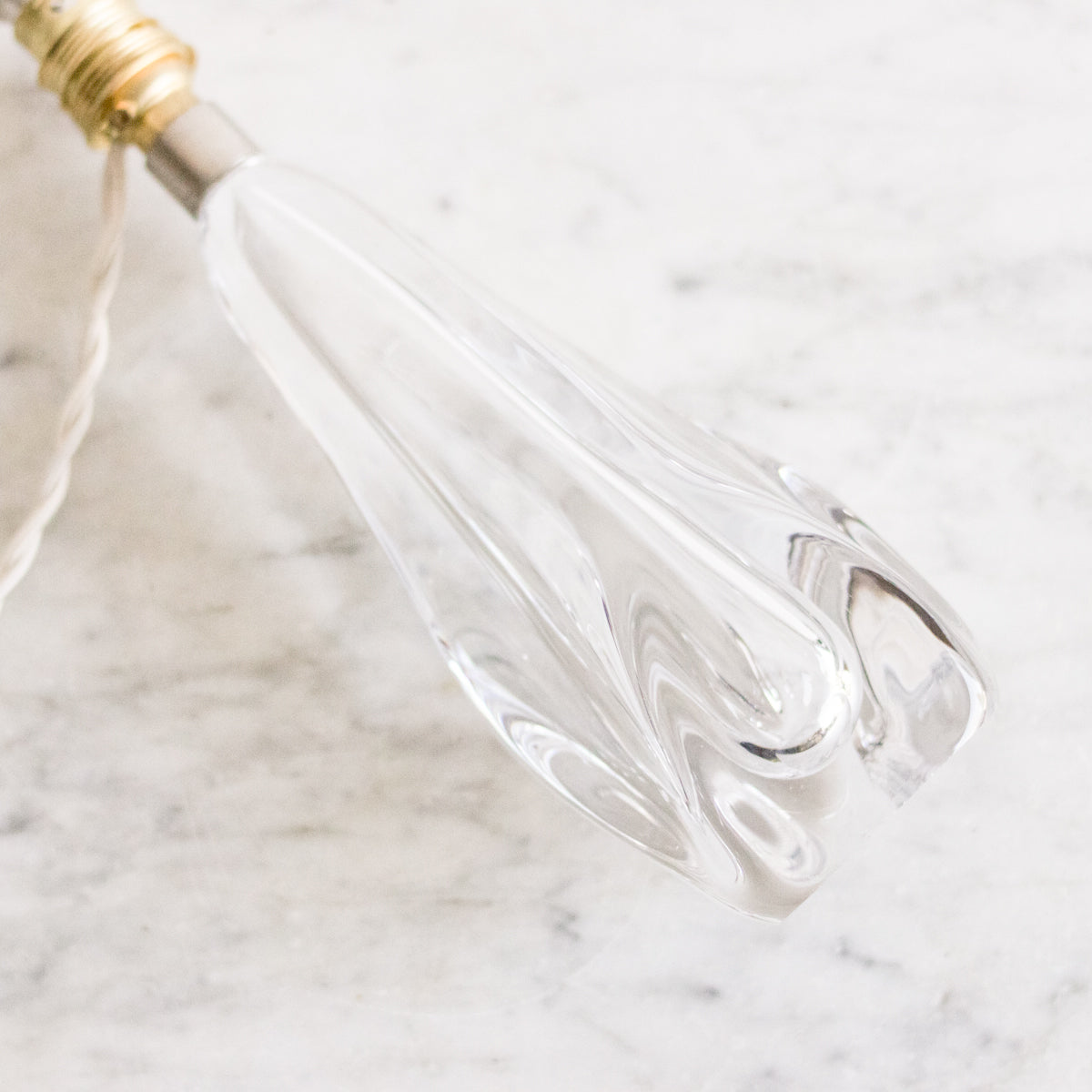 This petite crystal lamp brings authentic French vintage charm to any room. The lamp has been professionally rewired for safe US outlet compatibility and includes an on-chord switch for convenient control. It accepts a standard B22 bayonet bulb, which is included. A distinctive accent piece that celebrates the craftsmanship and character of European vintage lighting.