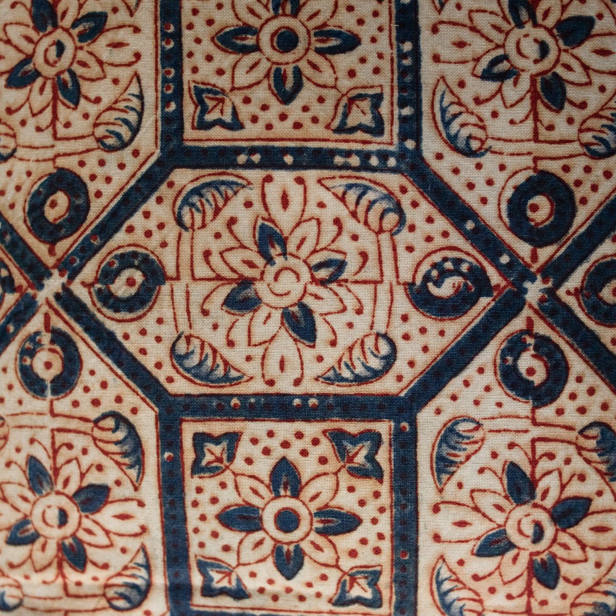 Block printed textiles are made from pure cotton and natural dyes. Small smudges and other imperfections are normal. Fabrics are made entirely by hand. Please do not dry clean.