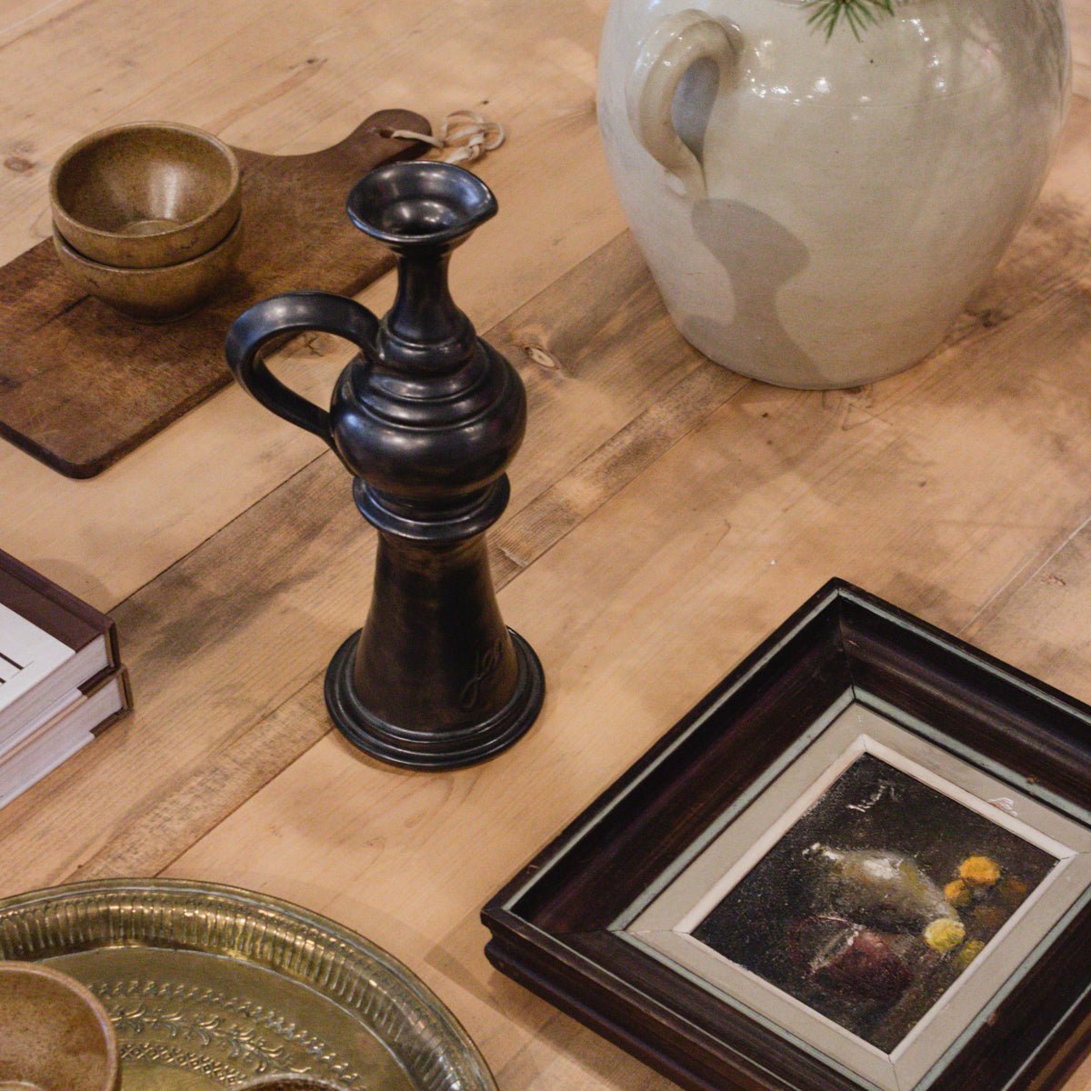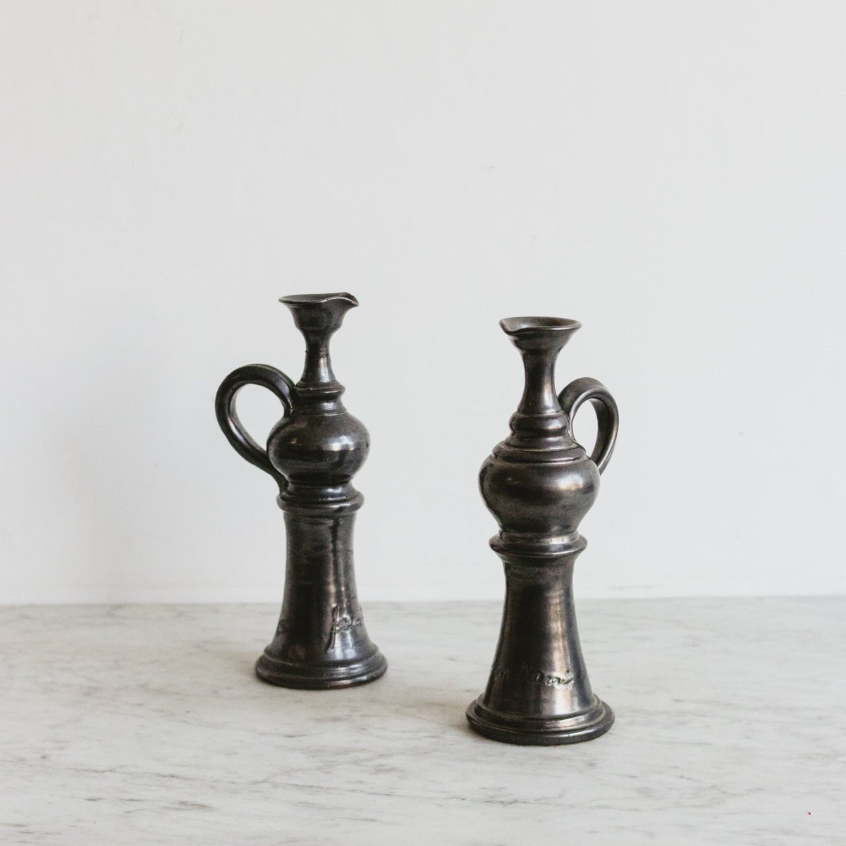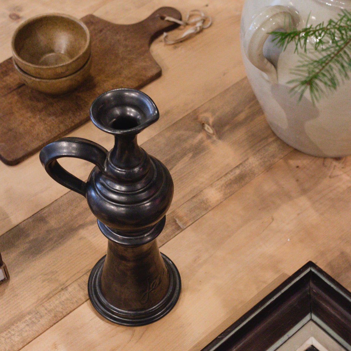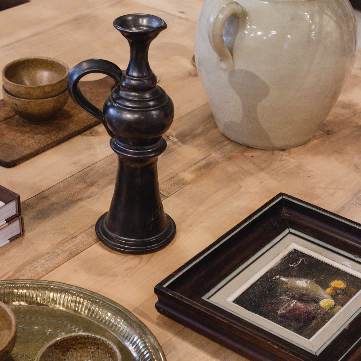 - Made of stoneware with an iridescent black finish Jean Marais is known for.