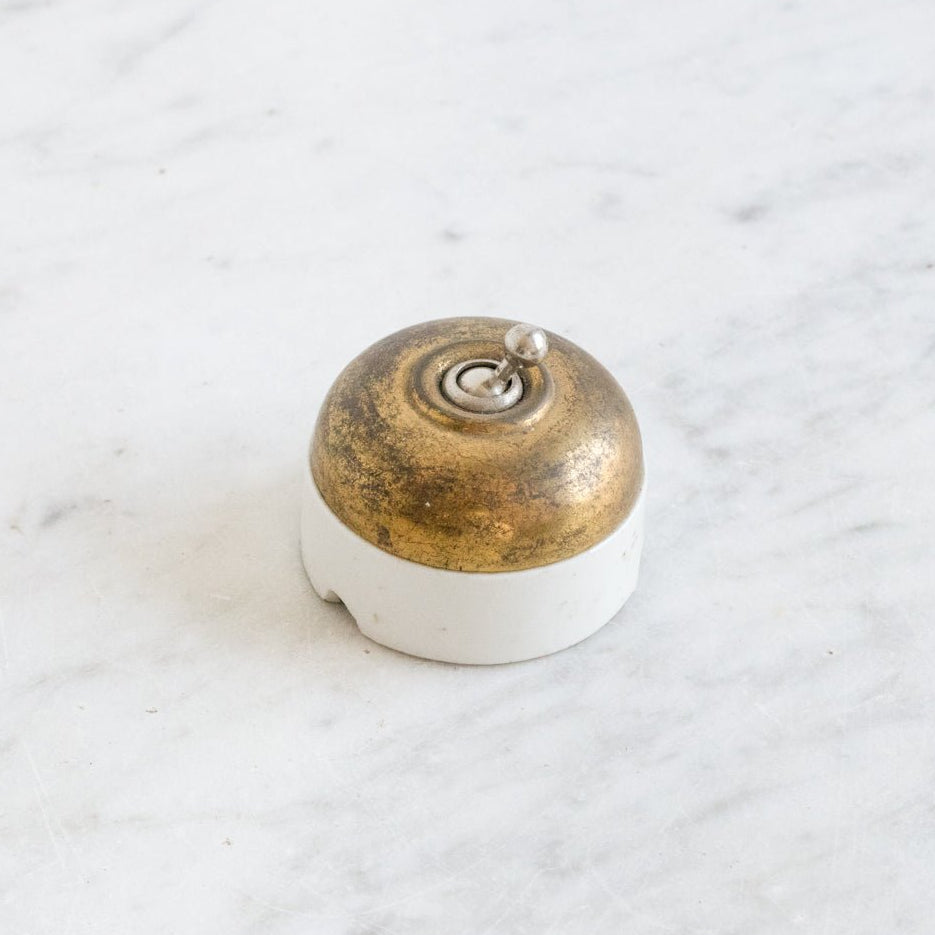 This Antique Light Switch, discovered at a flea market in Alsace, features exquisite porcelain paired with cast brass details, reflecting authentic historical craftsmanship. Designed for professional installation, it adds a distinctive vintage charm while ensuring safe, reliable operation in your home.