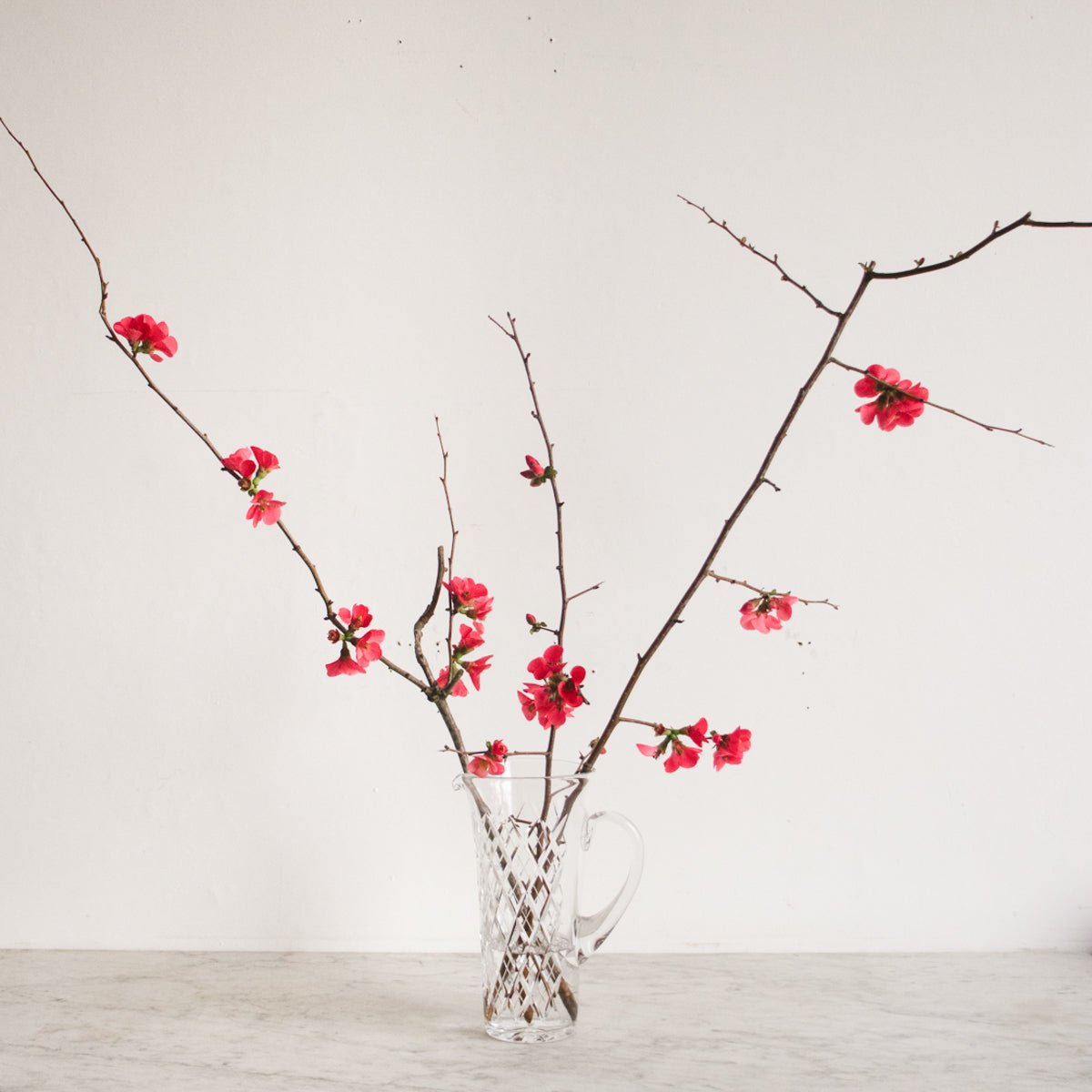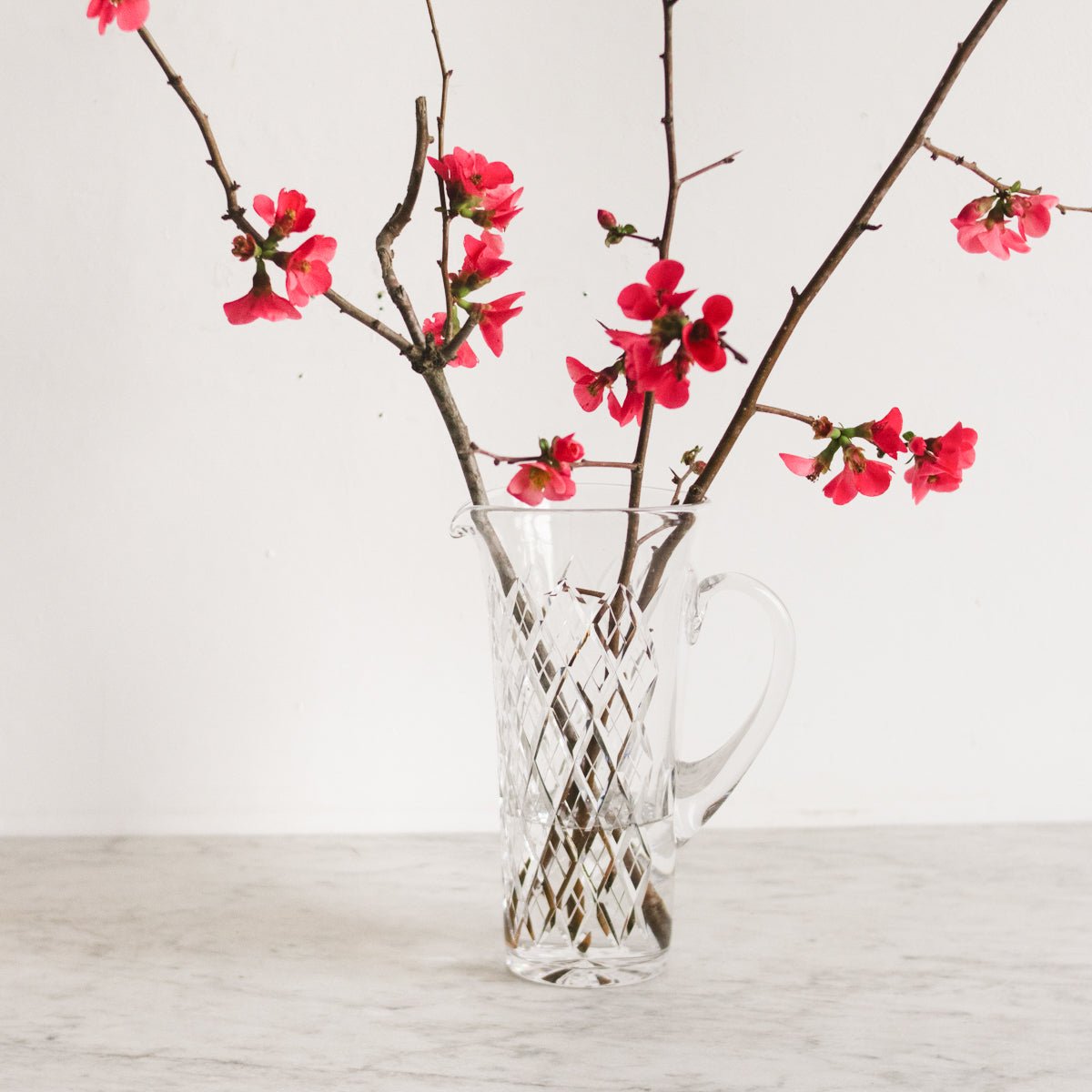 Fill it with chilled water and slices of citrus, a simple bouquet from the garden, or let it stand empty on open shelving where its pattern can shimmer in the light.