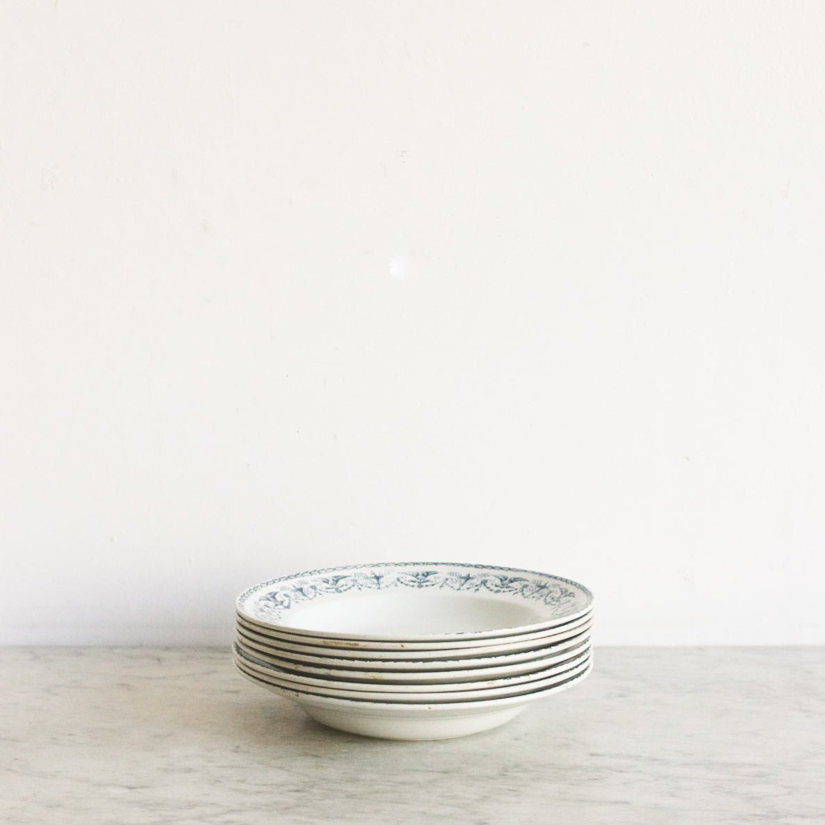 Ironstone is made from a mixture of clay, flint, and ironstone (a sedimentary rock rich in iron oxide), which gives it its characteristic dense and heavy composition. The clay and other materials are combined and formed into the desired shape, such as plates, bowls, pitchers, or teapots. The pieces are then fired at high temperatures, resulting in a hard, vitrified surface.