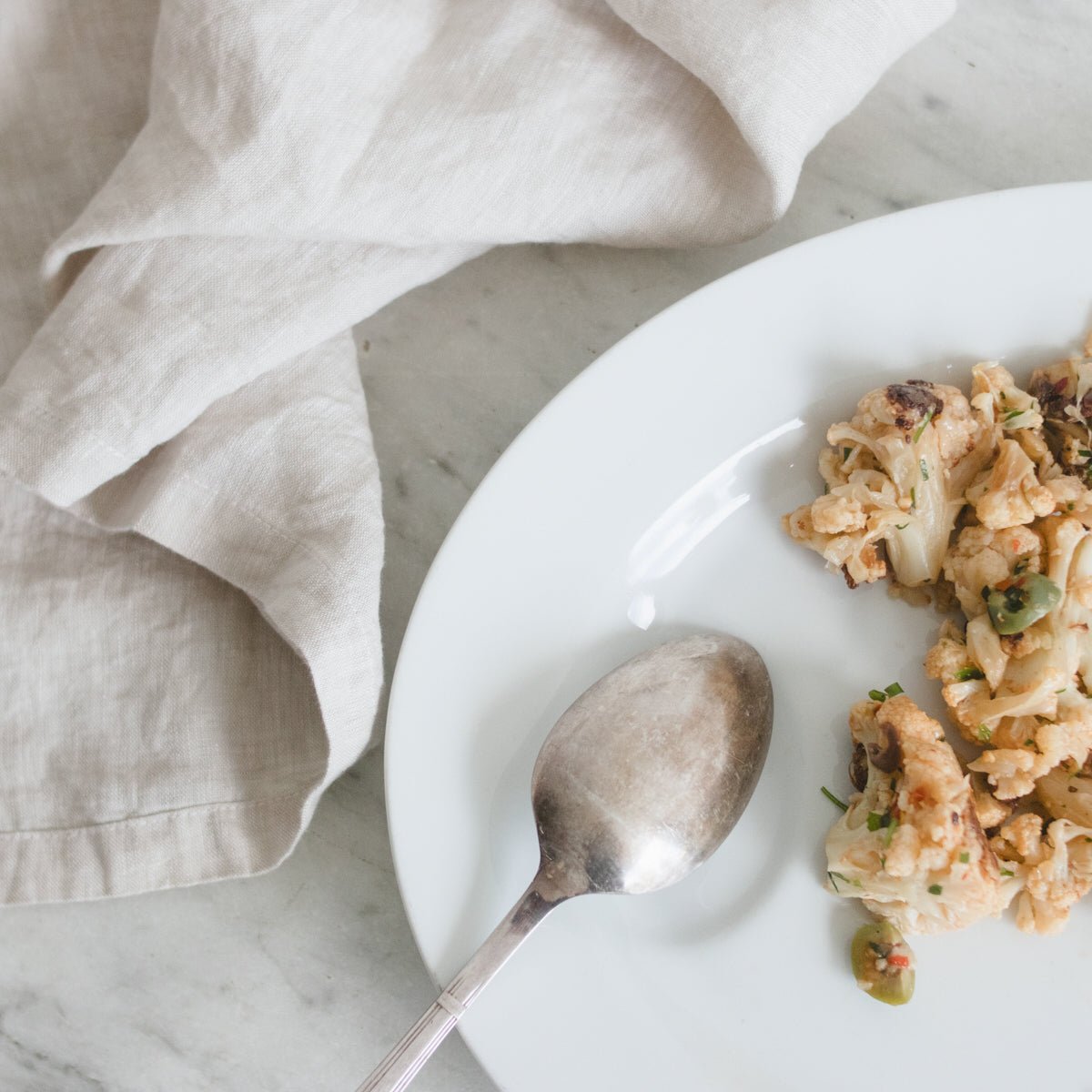 table linens: vintage napkins, vintage kitchen towels, linen aprons, and pretty silver napkin rings.