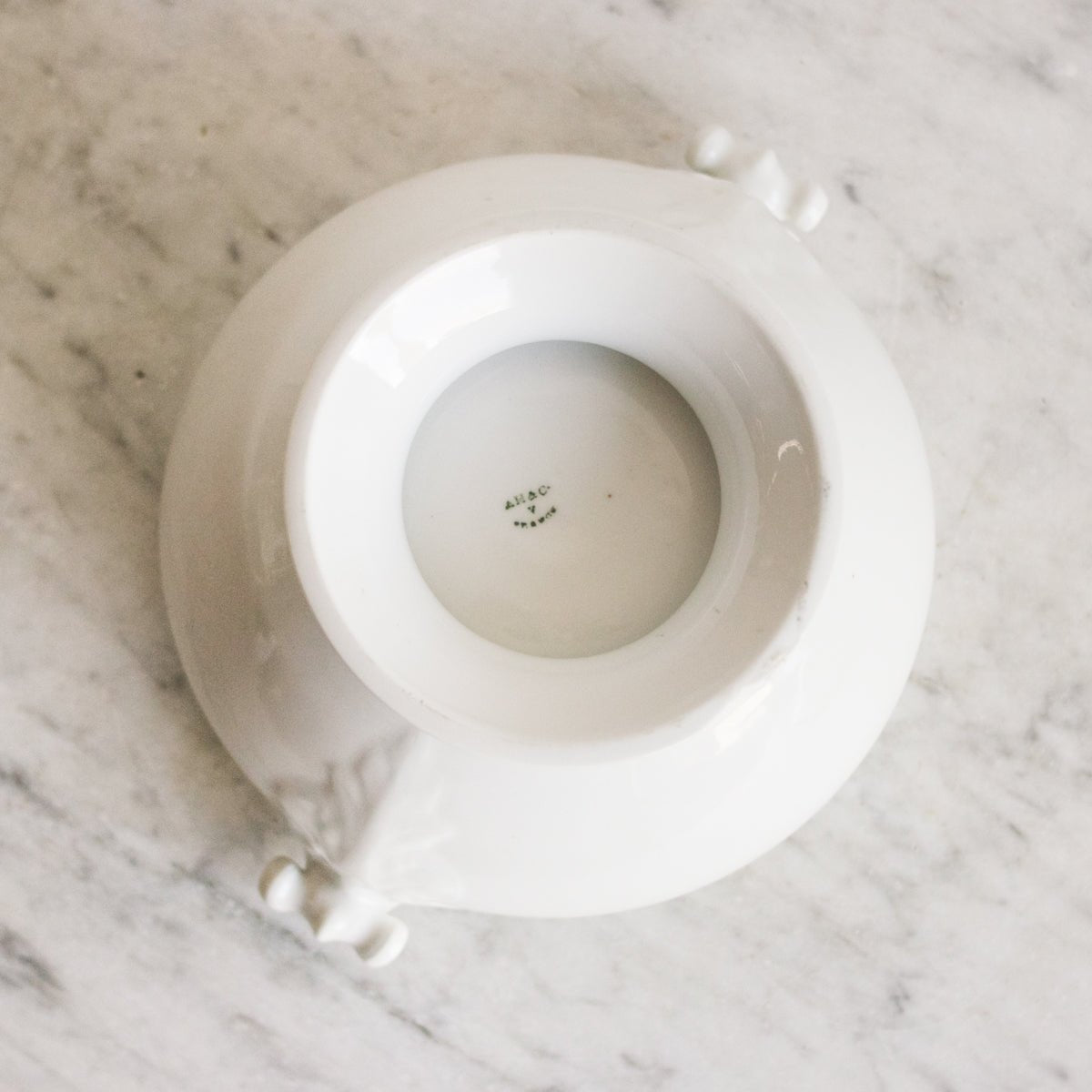 Ironstone is made from a mixture of clay, flint, and ironstone (a sedimentary rock rich in iron oxide), which gives it its characteristic dense and heavy composition. The clay and other materials are combined and formed into the desired shape, such as plates, bowls, pitchers, or teapots. The pieces are then fired at high temperatures, resulting in a hard, vitrified surface.