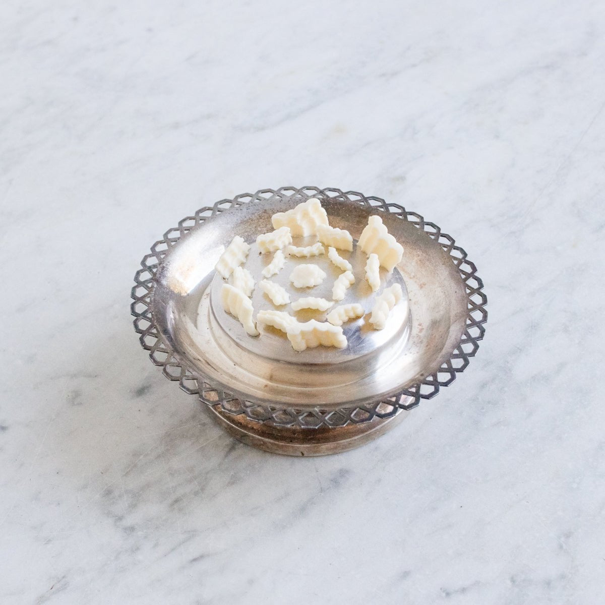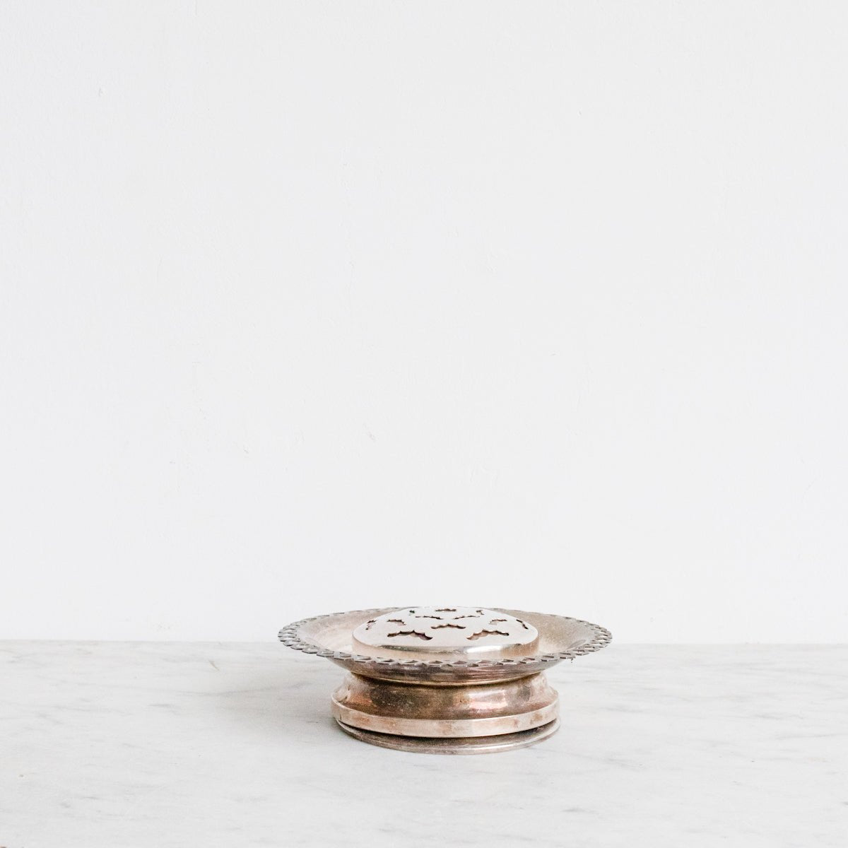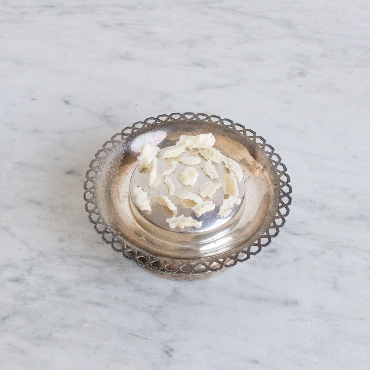 Introducing the Hotel Silver Butter Press, a unique treasure discovered in the charming flea markets of Paray le Monial. Crafted from durable cast brass and elegantly silver-plated, this exquisite piece is a testament to timeless craftsmanship. Each press is stamped with the maker's mark, ensuring authenticity and a touch of history. Elevate your culinary experience with this distinctive and functional work of art.