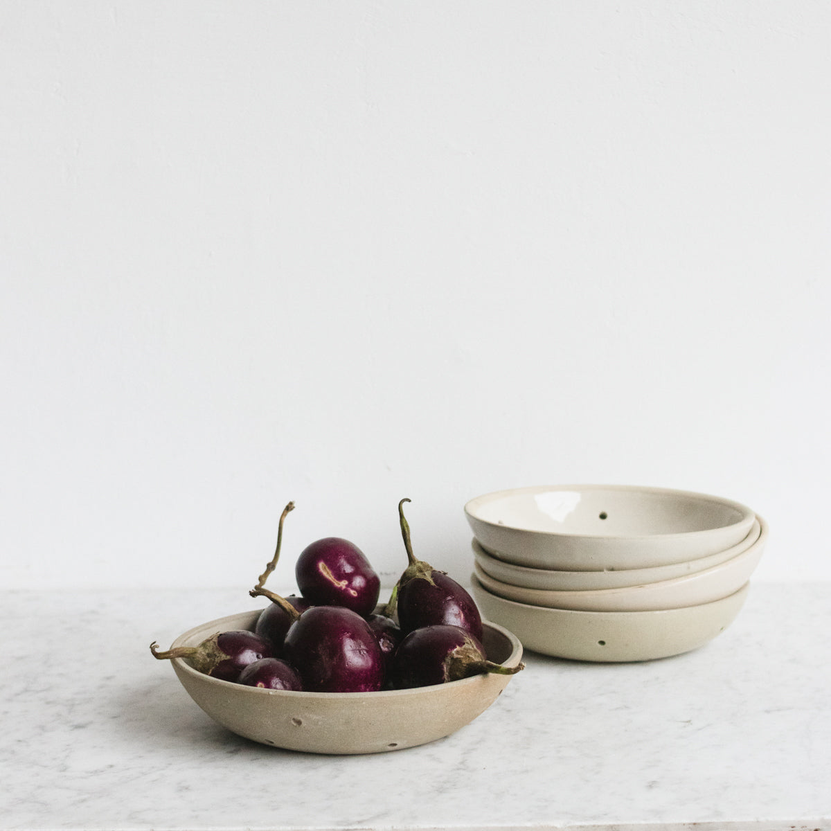 Authentic vintage stoneware berry bowl sourced from French flea markets, each piece handpicked for character and charm. Crafted from durable stoneware with the subtle variations and patina that only time can create. Measuring 7.5"–8.25" in diameter, this functional piece works equally well for serving berries, displaying botanicals, or adding rustic elegance to kitchen shelving. No two bowls are identical—we'll select a beautiful example for you, ensuring you receive a genuinely unique vintage find with authentic provenance.