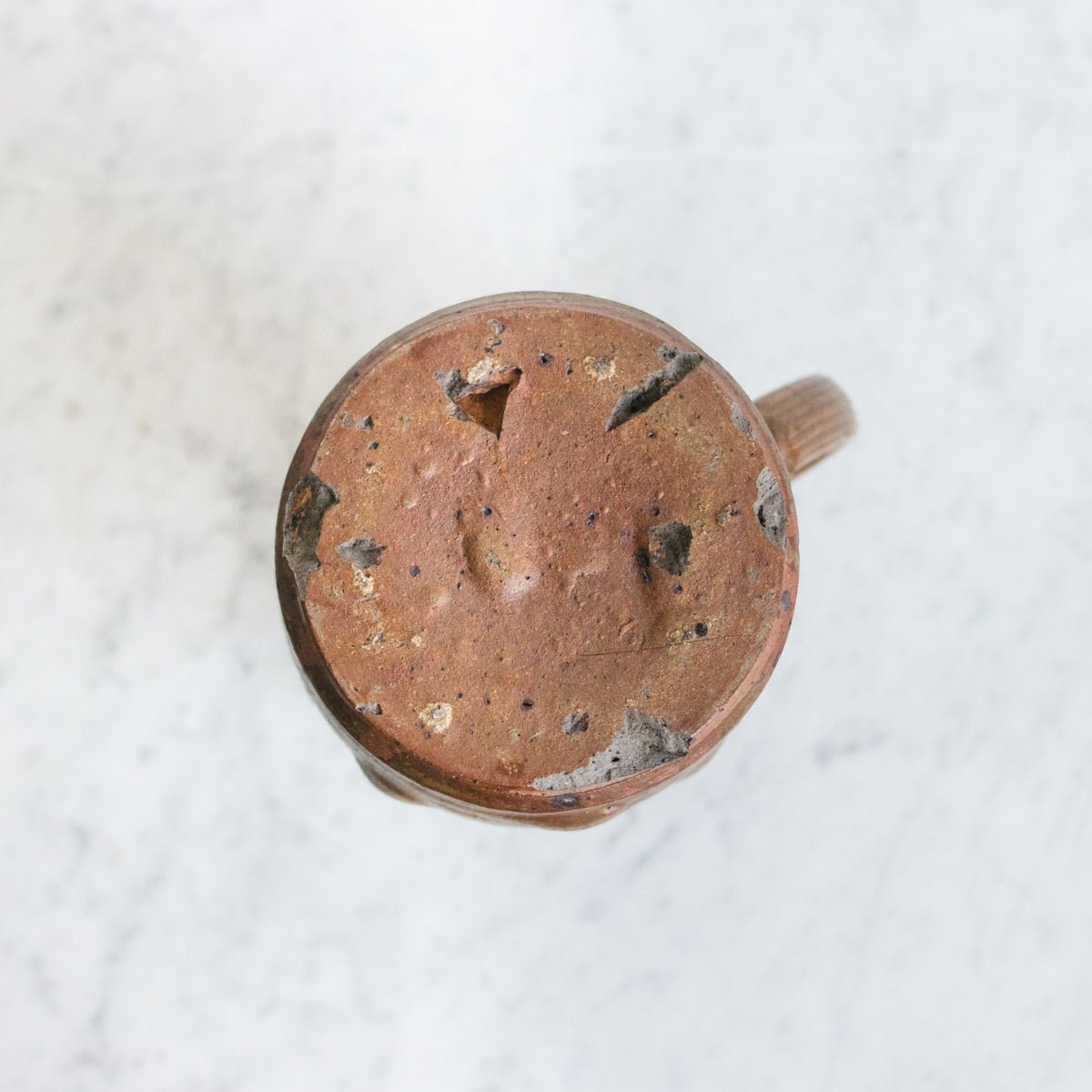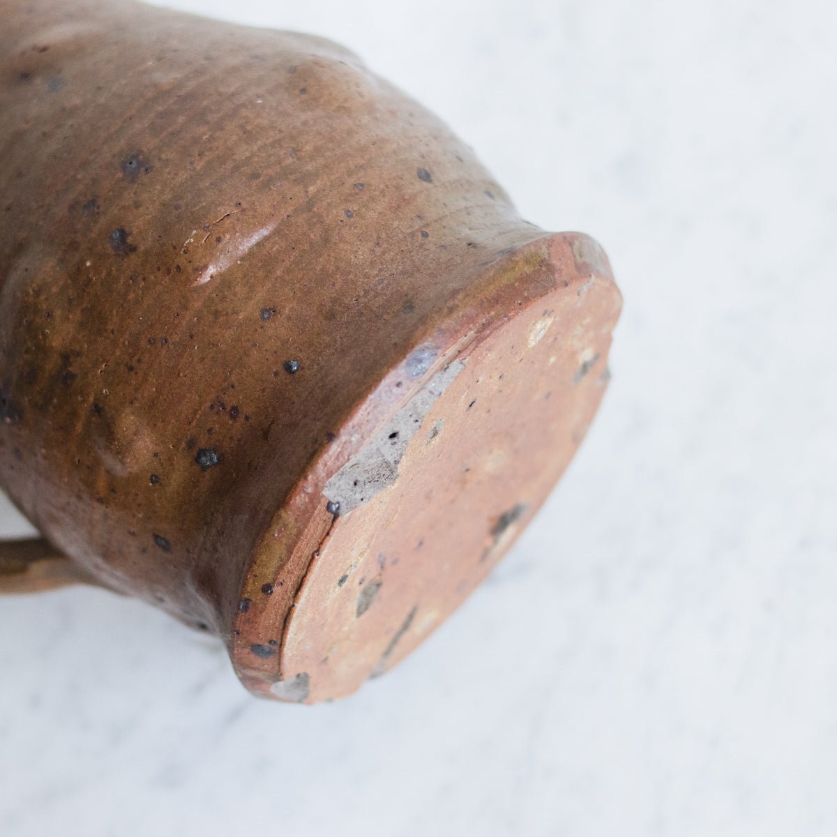 Authentic vintage stoneware pitcher sourced from an Alsace flea market. Handcrafted in durable stoneware with a generous handle, this piece carries the subtle variations and patina characteristic of genuine vintage ceramics. Measuring 5.5" wide by 7" tall, it's proportioned for everyday use—ideal for serving water, displaying dried botanicals, or as a standalone accent in a curated collection. A functional work of artisanal craftsmanship with genuine provenance.