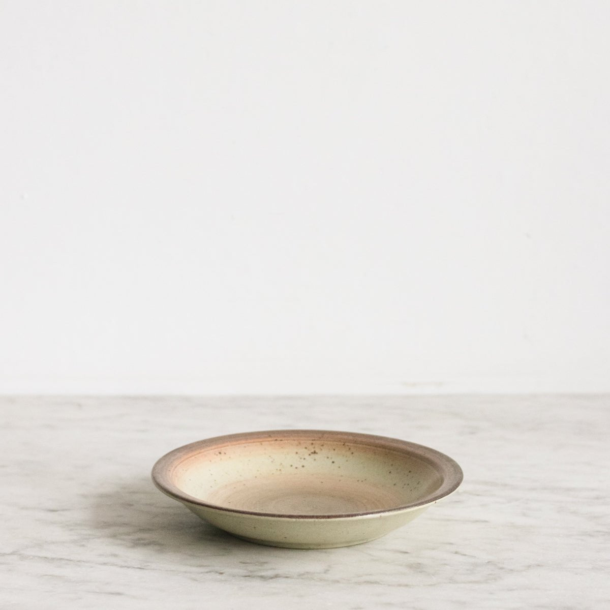 A set of eight vintage stoneware bowls sourced from a St. Etienne flea market, each bearing the maker's mark of its original craftsperson. Hand-thrown in durable stoneware, these 8-inch bowls with shallow 1.25-inch sides are ideal for soup, salad, or everyday dining. The authentic patina and imperfections characteristic of vintage French pottery add warmth to any table setting. A curated collection for those who appreciate functional vintage design with genuine provenance.