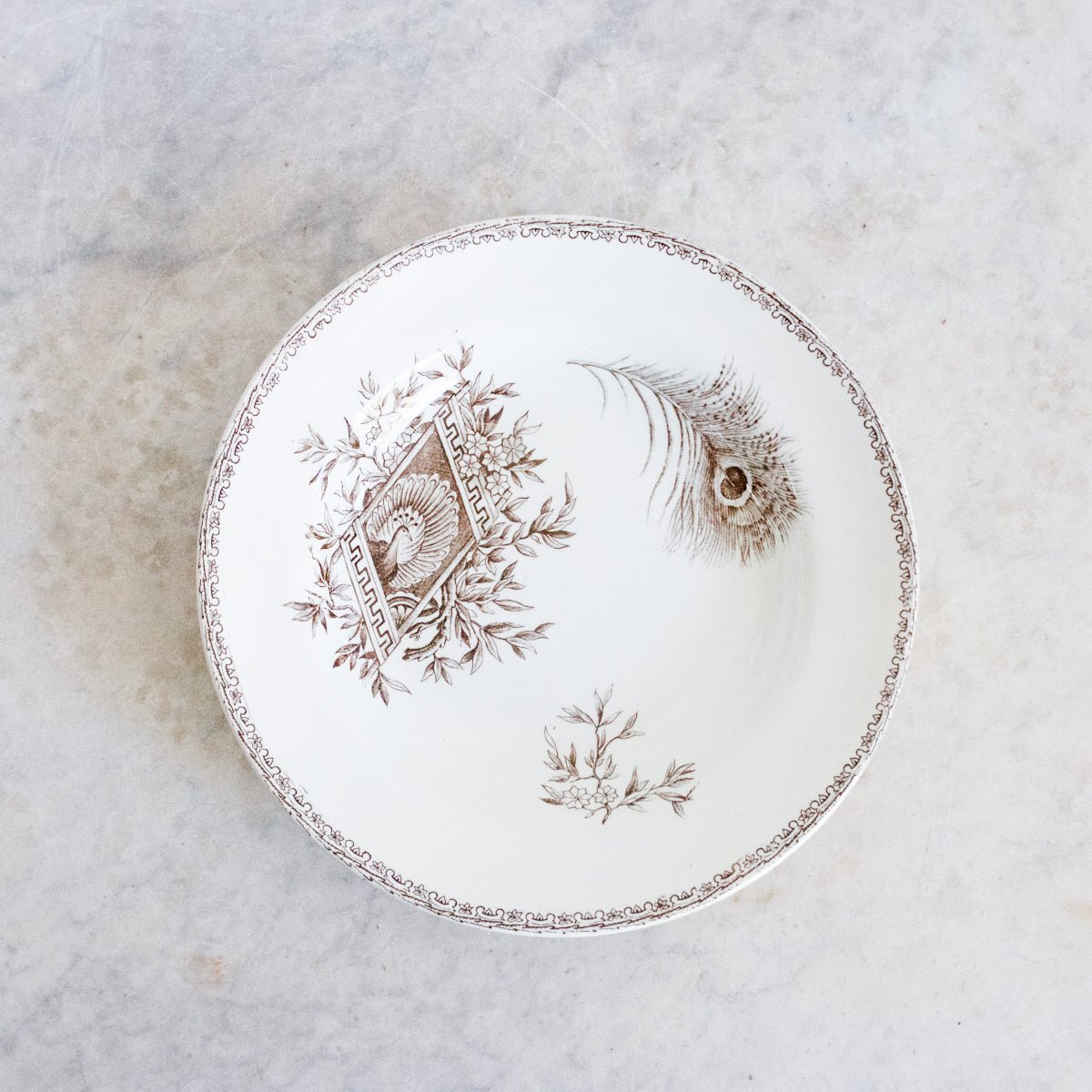 Succursale Transferware Plates With Birds & Feathers Set Of 8