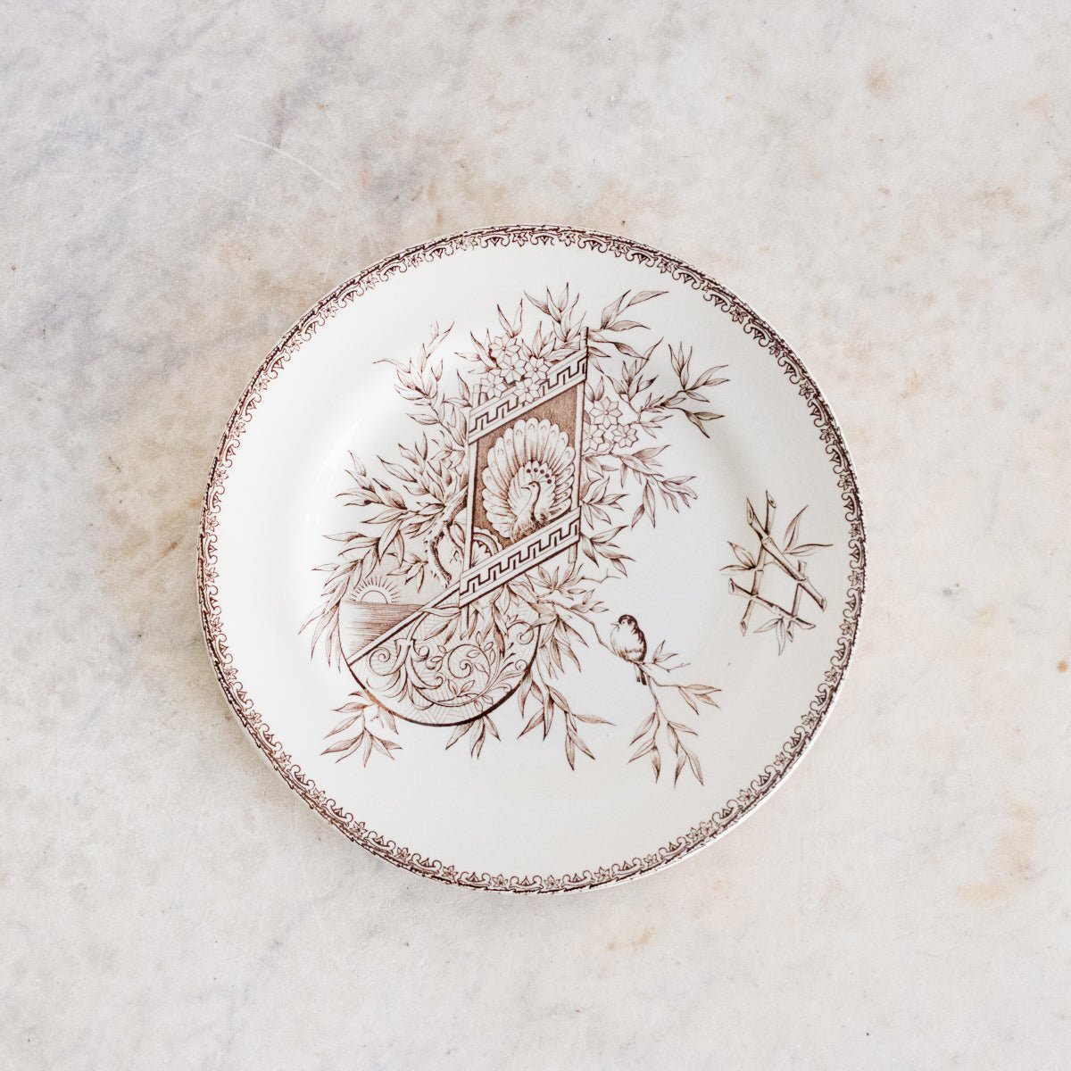 Succursale Transferware Plates With Birds & Feathers Set Of 8