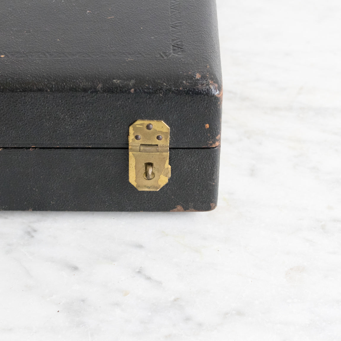 • Style of monogram and insignia on the box indicate this set was made between 1890 and 1920