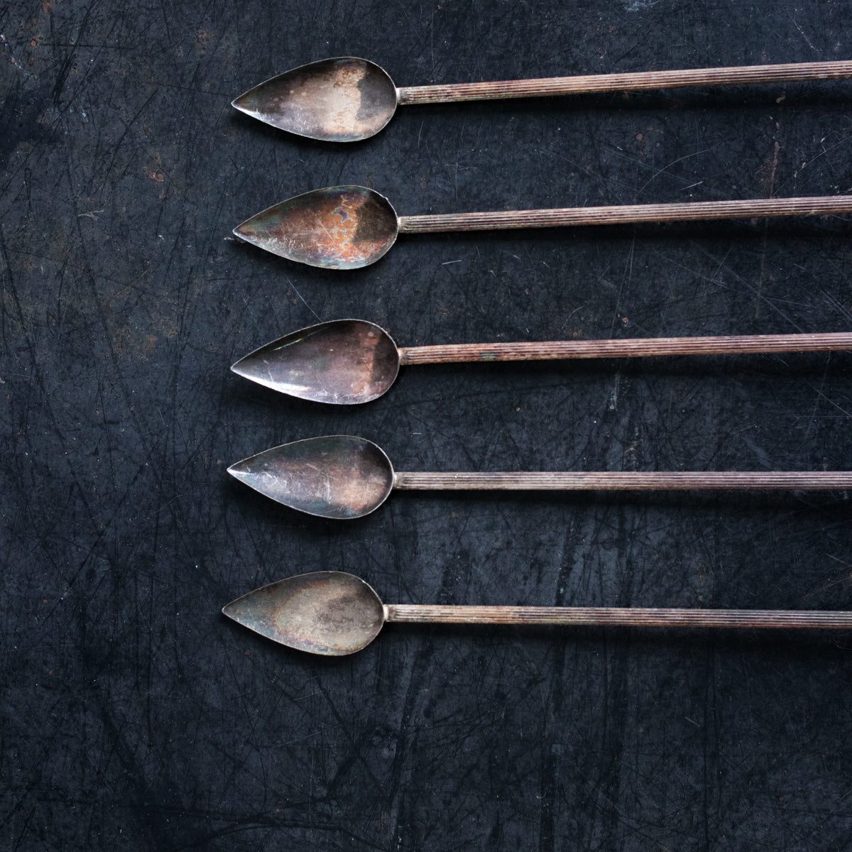 Lustrous silver candlesticks, champagne buckets, trays and bar tools to add some sparkle to your bar. Our collection of vintage flatware and christening cups is the best of its kind.