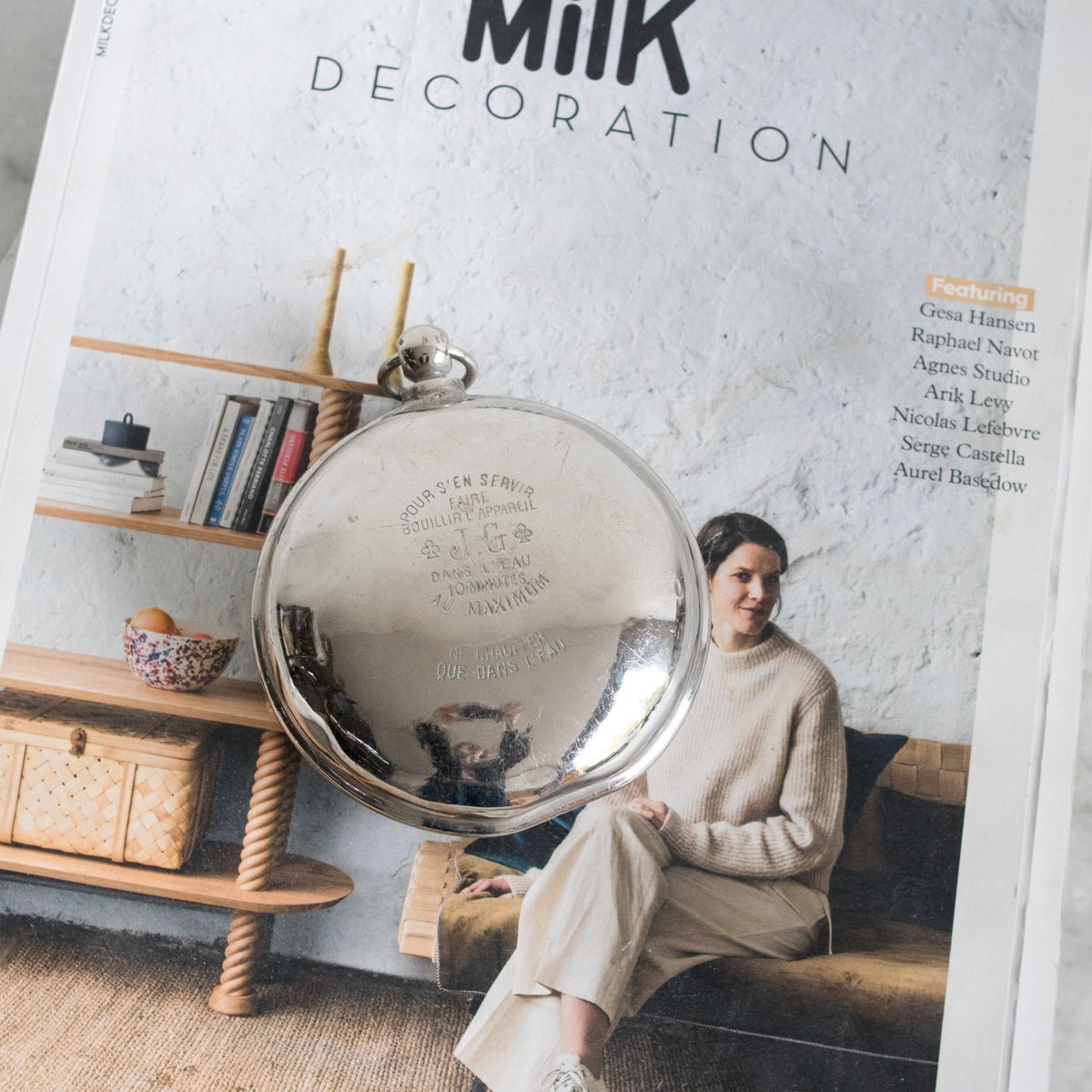 This charming early 20th-century metal hand warmer is a beautifully preserved piece of everyday ingenuity from a time before central heating. Made to be heated directly in boiling water, it was designed to slip into a pocket, coat, or muff and provide gentle, lasting warmth on cold days. The rounded metal body retains heat remarkably well, while the stamped French instructions—“Ne chauffer que dans l’eau” (heat only in water) —add an authentic historic touch.