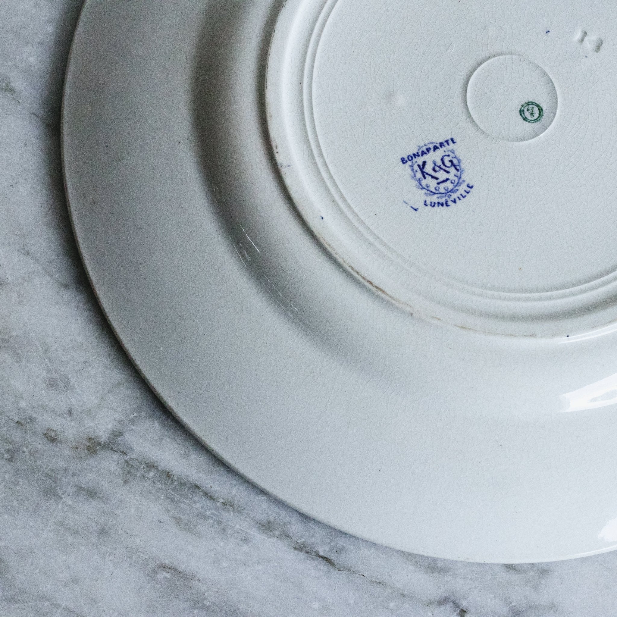 Pieces are typically marked “K & G Lunéville”, though the pattern name was sometimes applied by collectors rather than printed on the ware itself. The simplicity and harmony of its composition make Bonaparte a timeless pattern—equally at home as a historical collectible or as part of a modern, understated table setting.