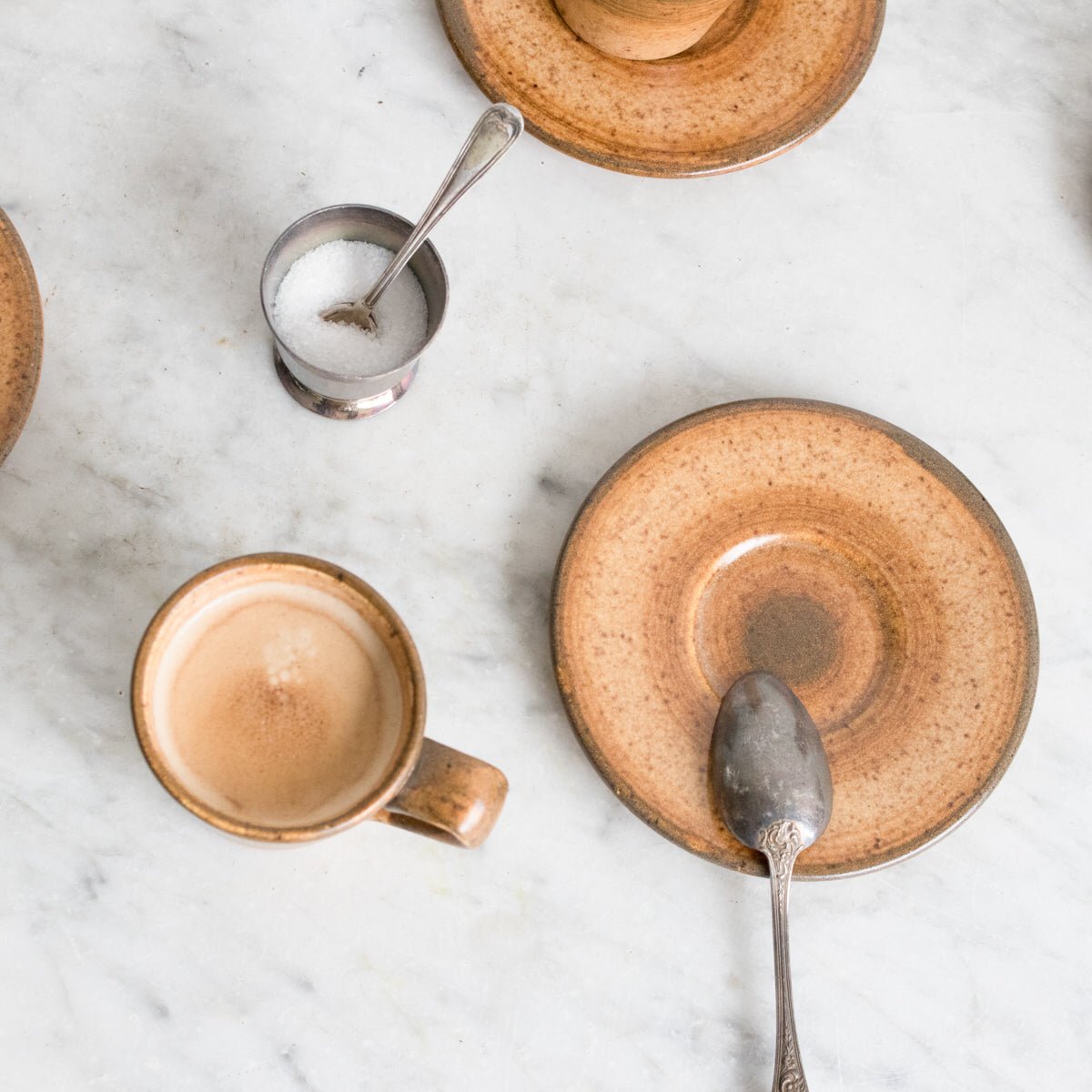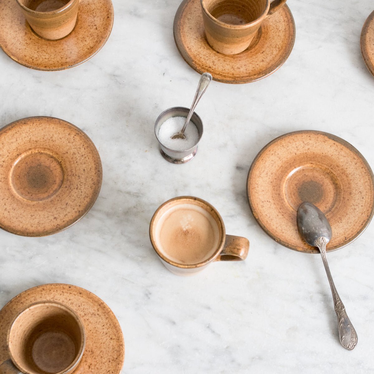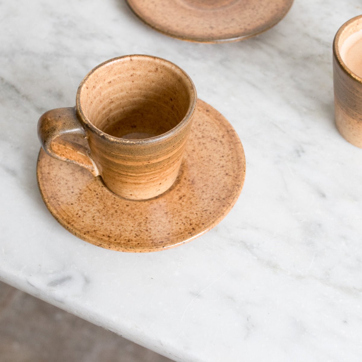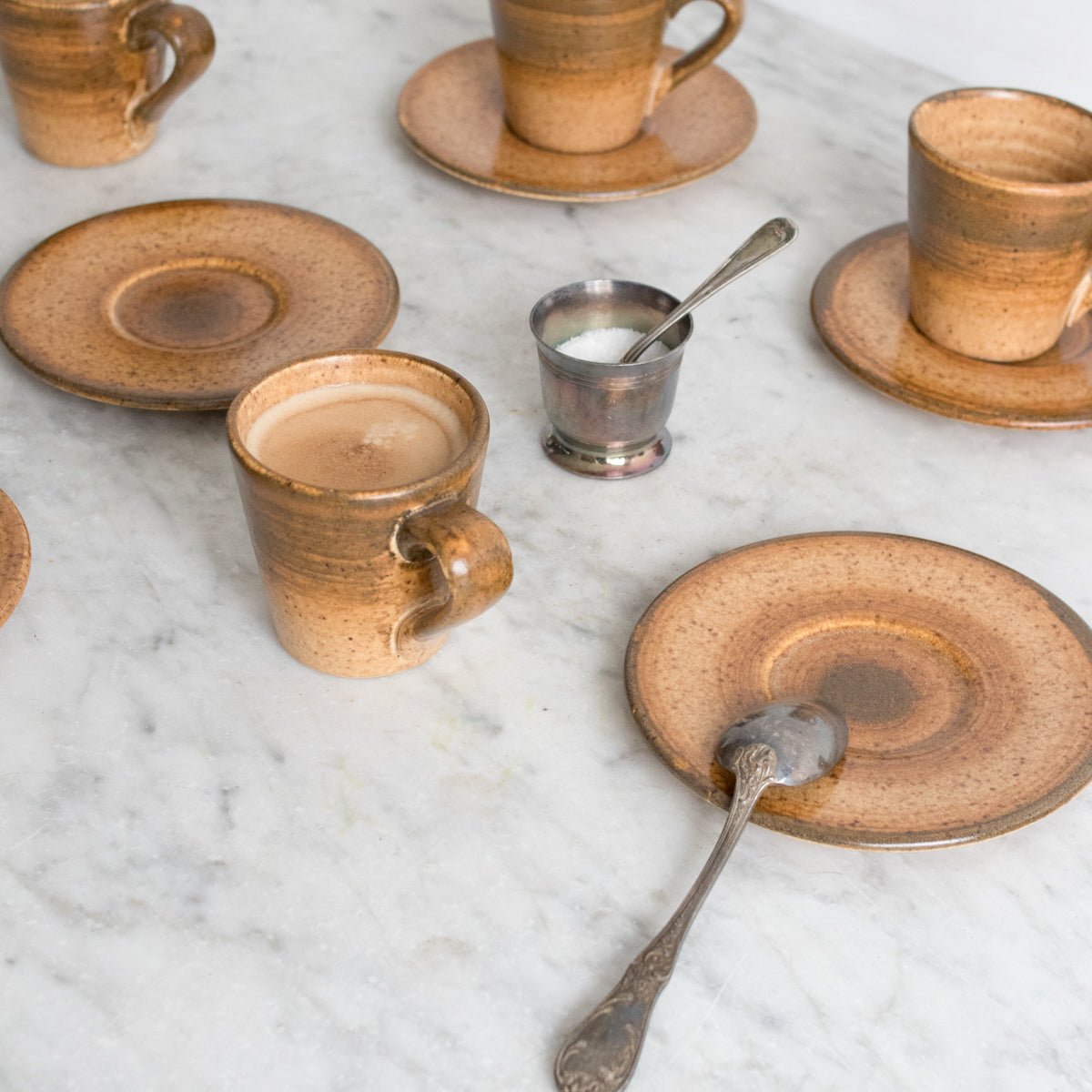 Vintage Stoneware Espresso Cup and Saucer Set of 6